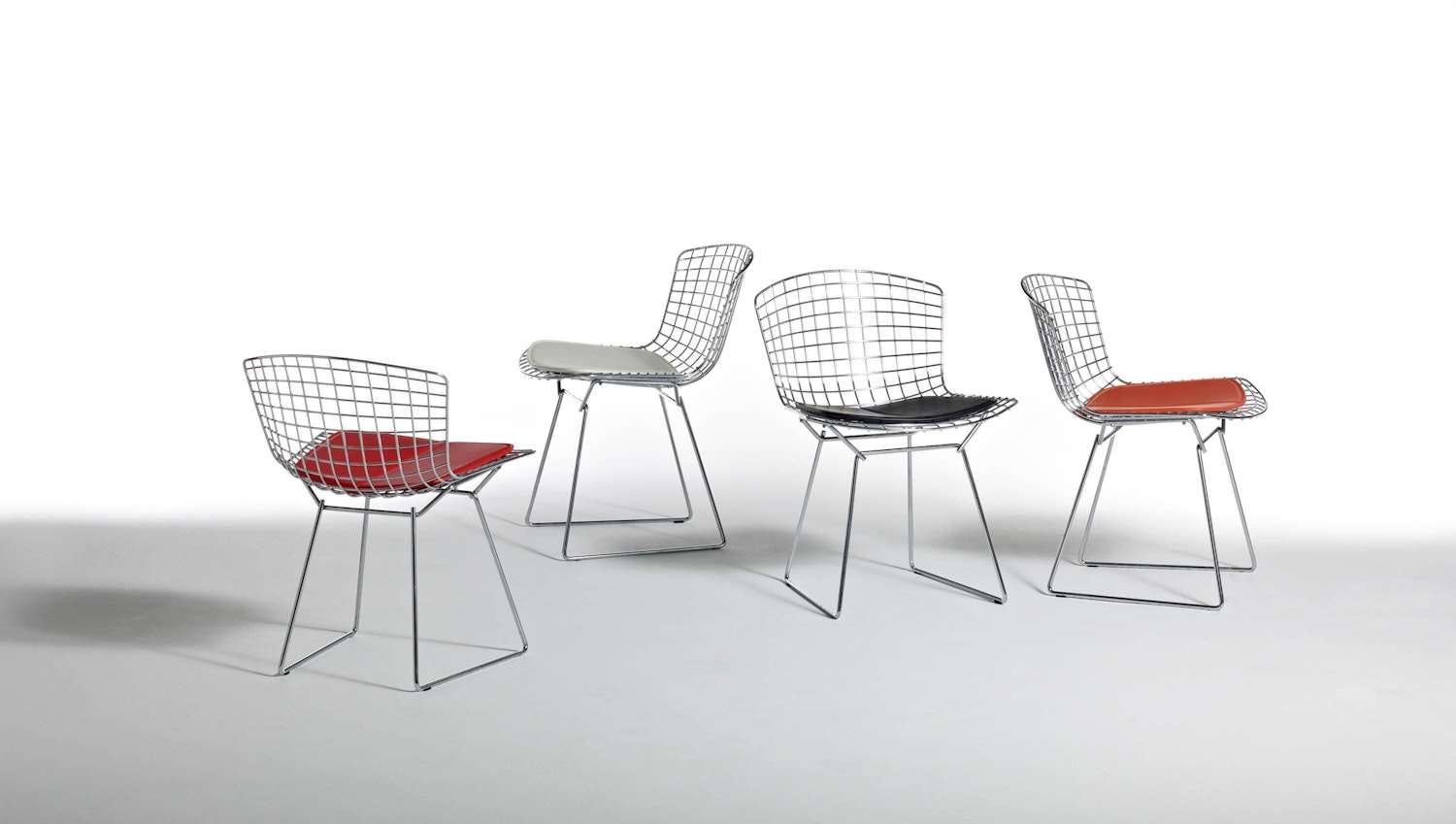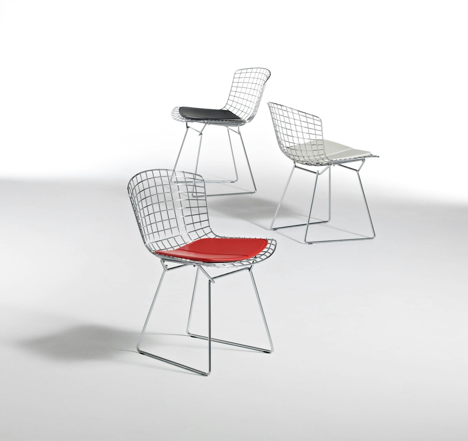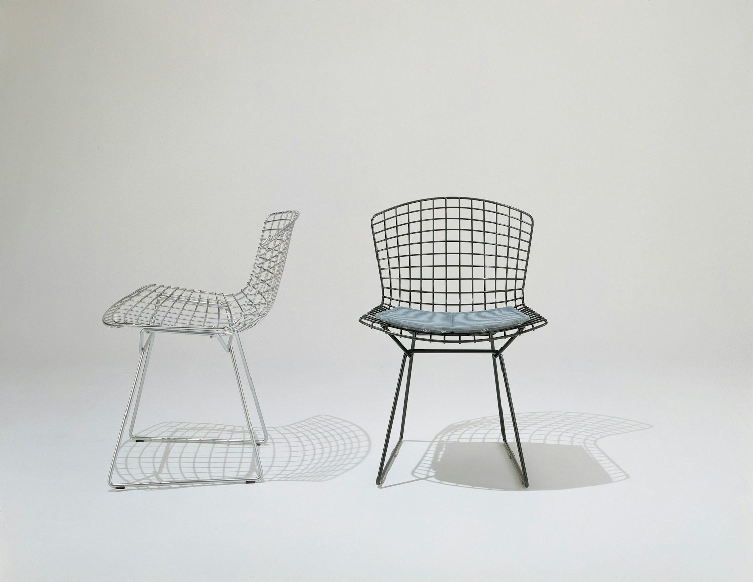 Harry Bertoia’s delicately industrial wire side chairs are among the most recognized achievements of mid-century modern design. Like Saarinen and Mies, Bertoia found sublime grace in an industrial material, elevating it beyond its normal utility into a work of art. The entire 1952 wire collection is an astounding study in space, form and function by one of the master sculptors of the last century and a proud part of the Knoll heritage.