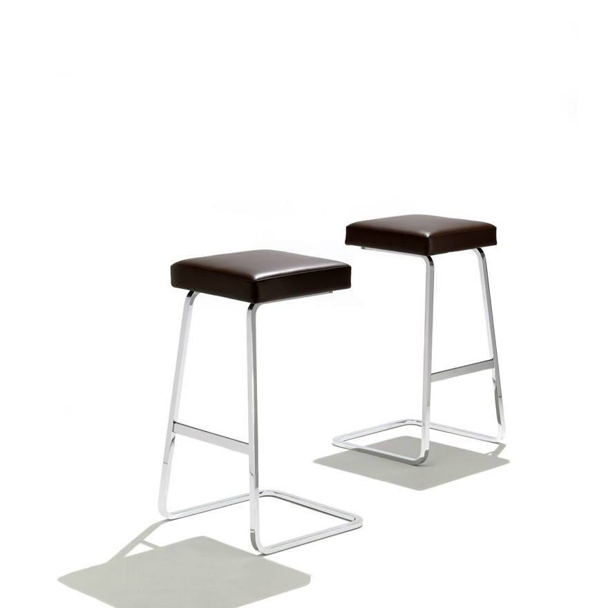 Johnson’s most memorable contribution to the project was the design of the interiors of The Four Seasons restaurant on the ground floor of the building. Johnson, a disciple of Mies, faithfully specified the modern master’s furniture throughout the interior. A Barcelona table and chairs were used in the lobby, and the flat-bar Brno chair was developed for use in the two large dining rooms. In the bar room, Johnson specified a stool of Miesian style and proportion. No prior drawings by Mies exist for this design and it is thought that it was most likely a collaborative effort by Johnson and Mies. The restaurant opened in November of 1959. In 2004, Carl Magnusson developed the stool for production in Italy; it was introduced in 2006.