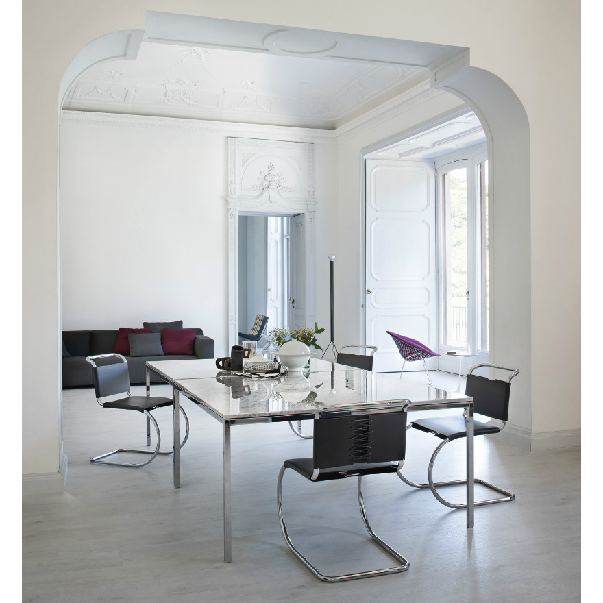 The MR Collection represents some of the earliest steel furniture designs by Mies van der Rohe. The material choice was inspired by fellow Bauhaus master Marcel Breuer, while the forms are thought to be modern derivatives of 19th century iron rocking chairs.
