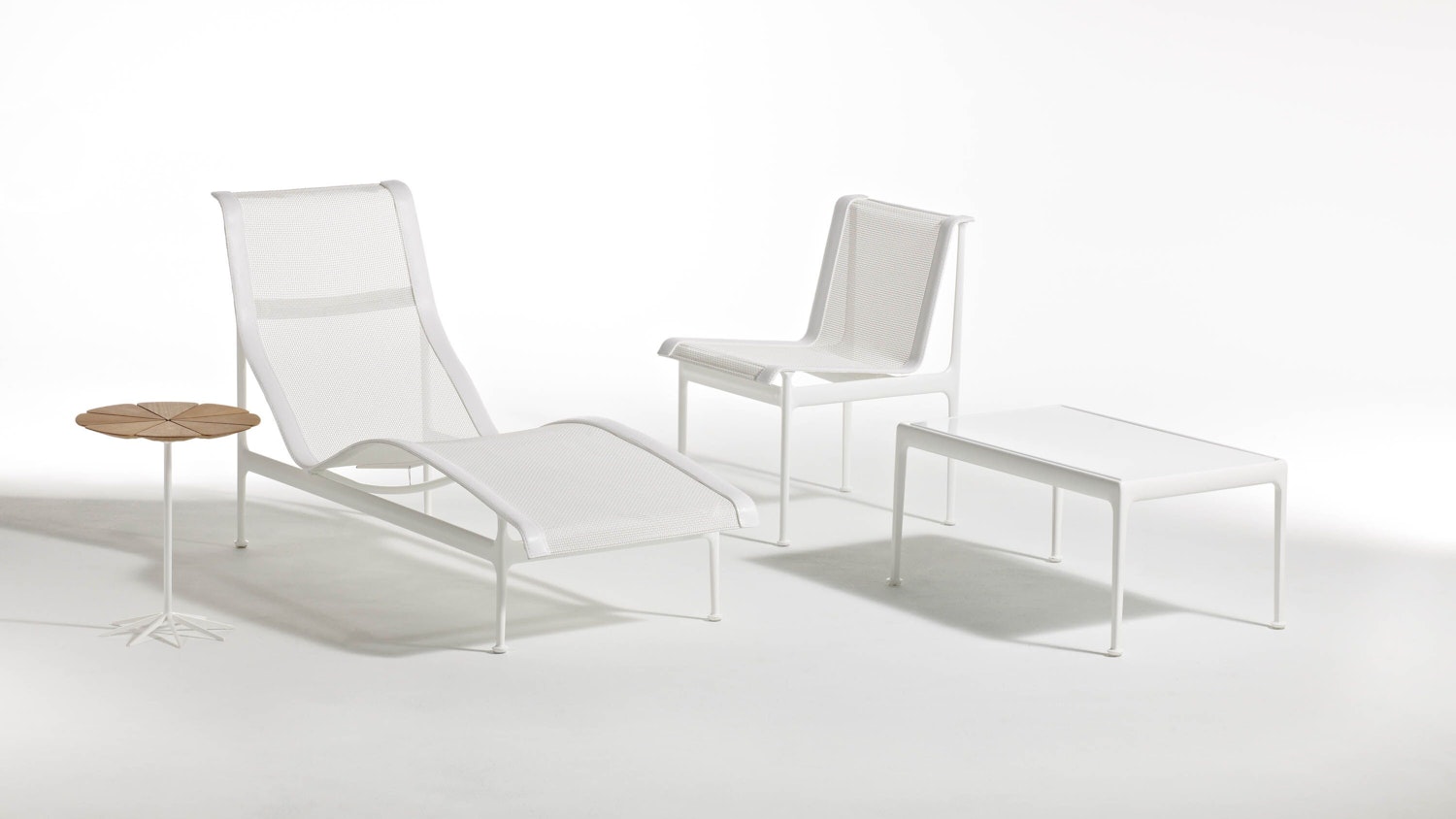 Schultz is best known for his outdoor furniture designs. His graceful Petal Table, introduced in 1960, received the design award from Industrial Design magazine. The steel wire-formed 715 Chaise Lounge, which was introduced the following year to complement the Bertoia collection, was selected in 1963 by the Museum of Modern Art for its permanent collection of contemporary furniture. After Florence Knoll moved to a seaside home in Florida, she started sending the design team rusty pieces of furniture, asking them to develop something that could perform in the salty climate. Schultz responded with the aluminum Leisure Collection in 1966.