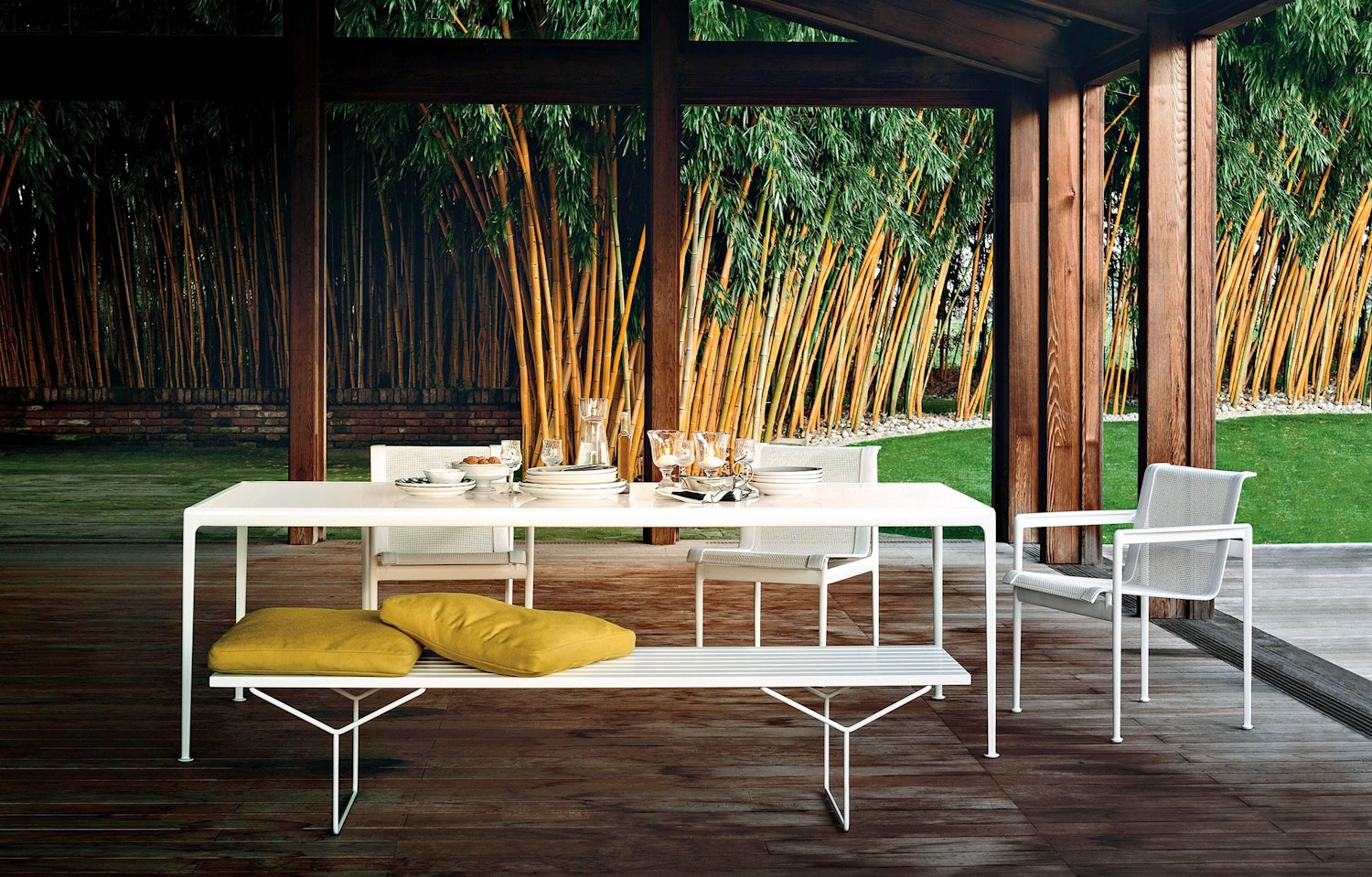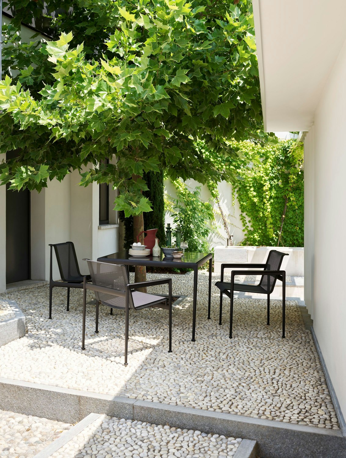 Richard Schultz's outdoor dining chairs have been setting the scene for modern meals outdoors for over 50 years. The aluminum frame makes them resilient to weather and wind, while the signature mesh back keeps you cool. The 1966 Collection was the first truly modern outdoor collection and has been the category standard ever since.