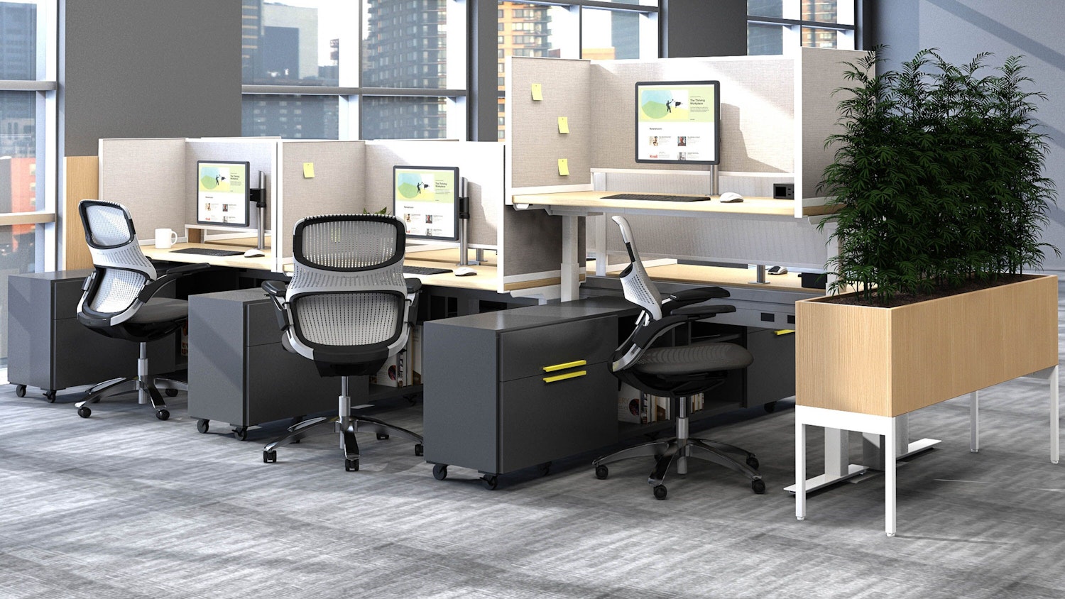 Antenna Desktop Screens, designed by Antenna Design, are our largest collection of desktop privacy screens that seamlessly integrate with the broad range of Knoll products. Available in a variety shapes, materials, finishes and configurations, Antenna Desk Screens feature a crisp modern aesthetic that work across a space.