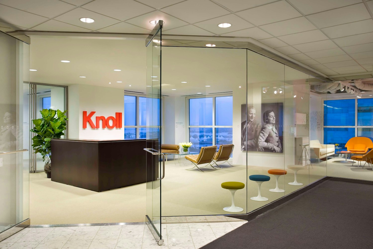 19133 | Knoll NYC Showroom with Florence Knoll Sofa, Barcelona Stools, Tugendhat Chairs