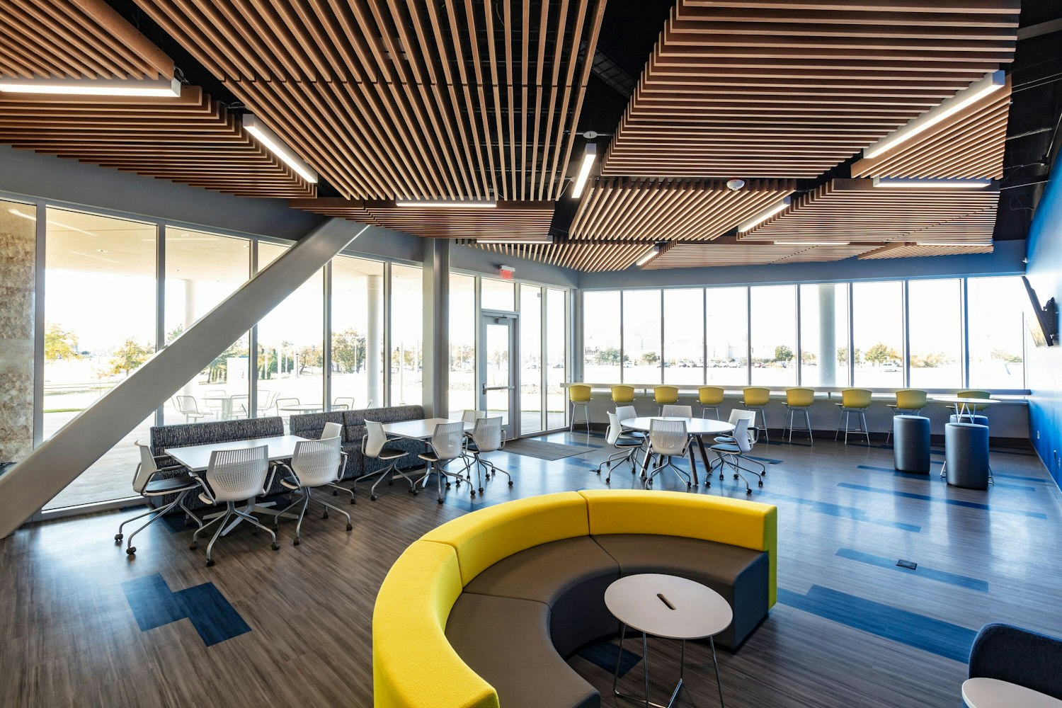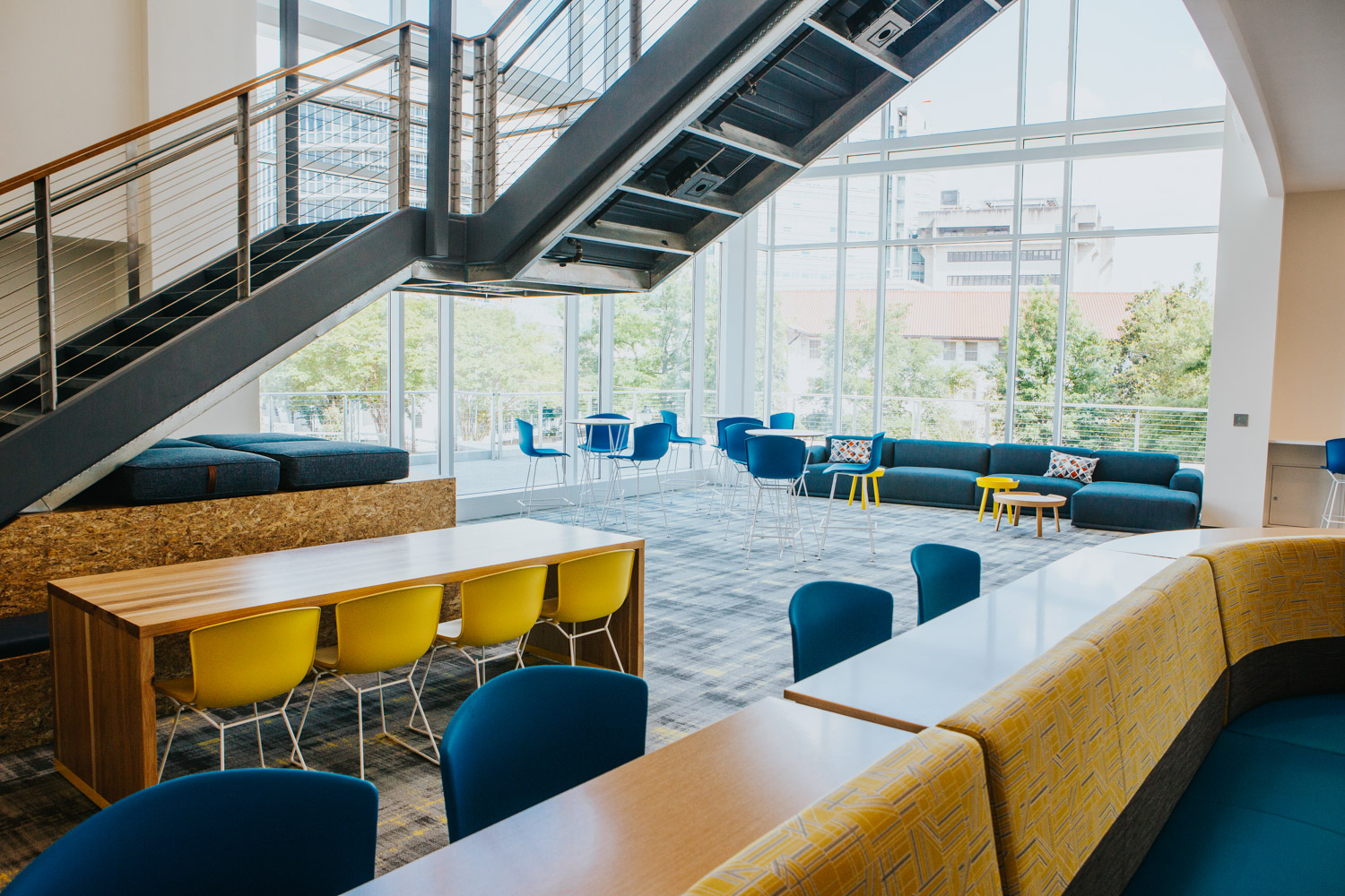 17378 | Student Union | k. lounge with Back, MultiGeneration by Knoll Light Task Chair, Bertoia Molded Shell Barstool