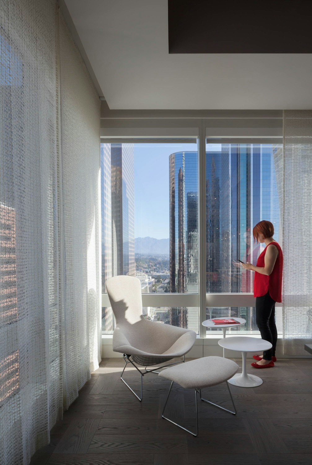 19248 | Matic Sofa with Bertoia Bird Chair and Ottoman, Laccio Coffee and Side Tables