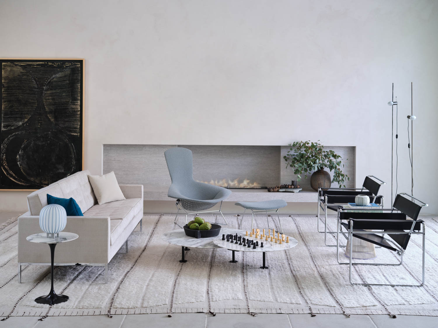 18374 | Bertoia Bird Lounge Chair, Wassily Chairs, Florence Knoll Sofa and Grasshopper Coffee Tables