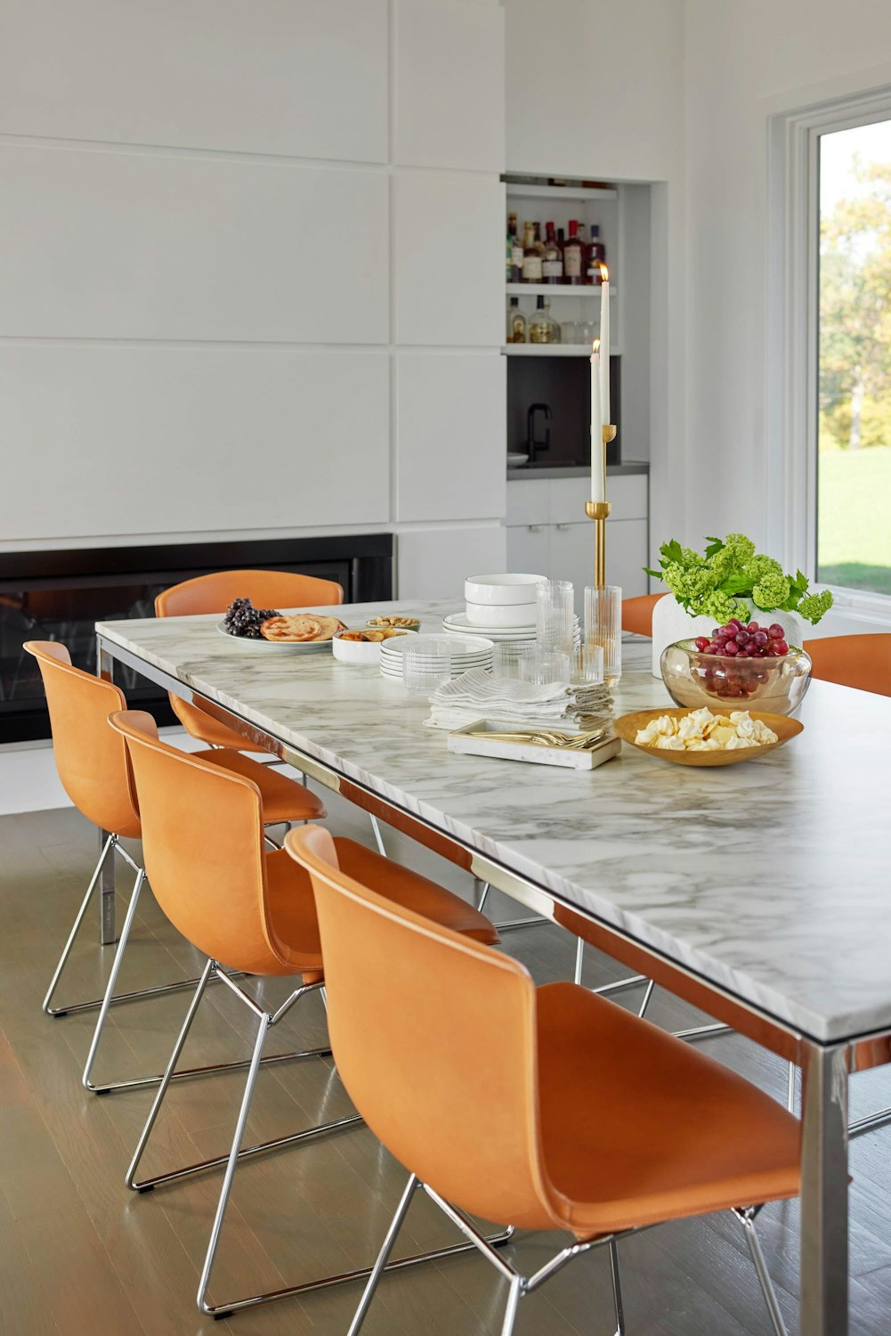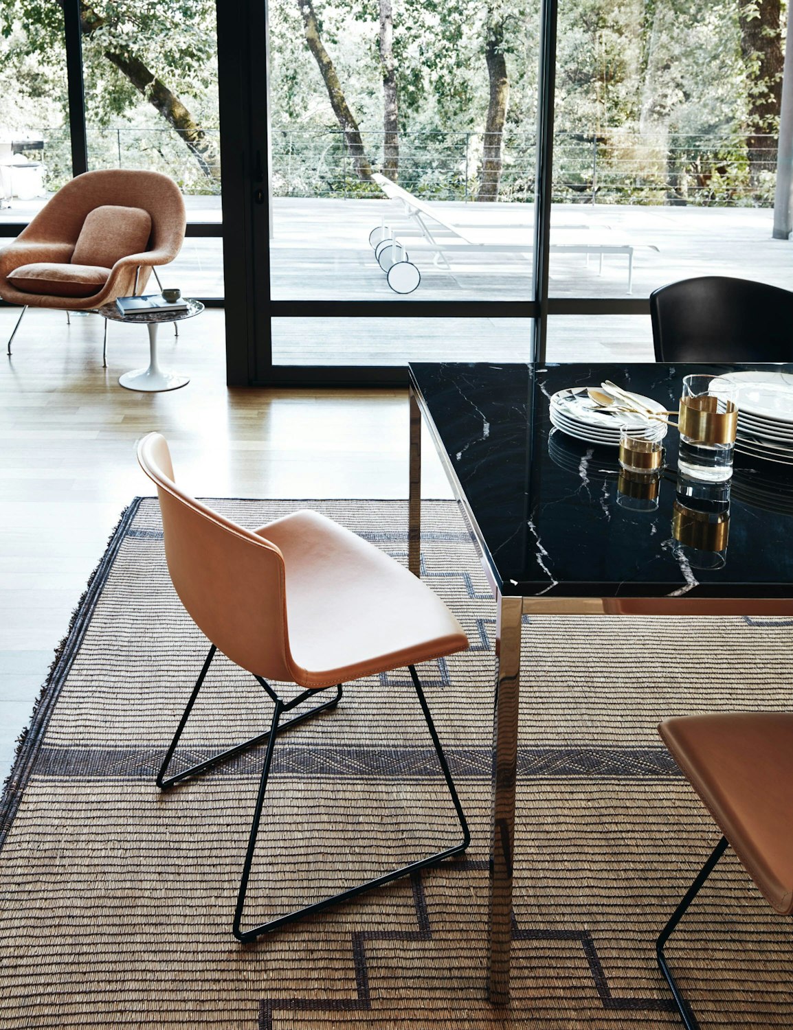 18186 | Bertoia Leather Covered Side Chair, Florence Knoll Dining Table