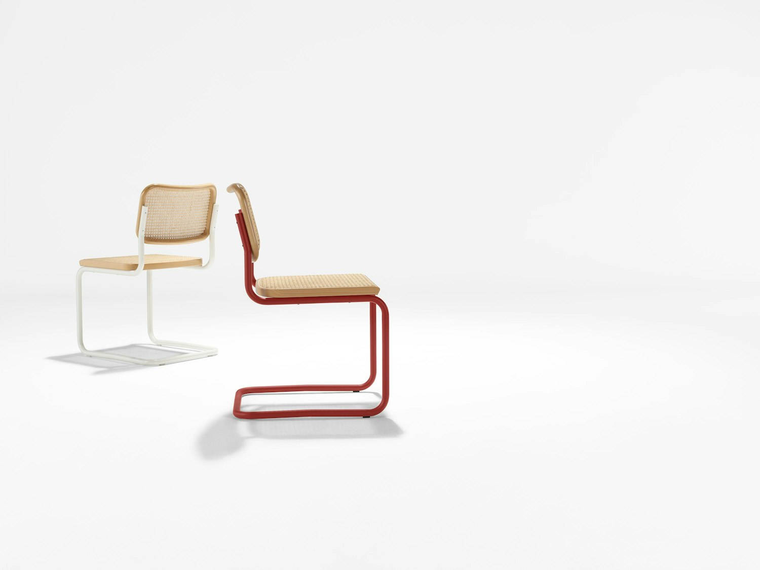After completing the Wassily, Breuer felt that the potential grace of the material was not yet fully exploited. The Wassily design was very much influenced by the constructivist theories of the Dutch De Stjil movement. A familiar form — in this case the classic club chair — reduced to its elemental lines and planes. The result was an overlapping, dense arrangement of leather and tubing. For the Cesca chairs Breuer sought to better celebrate the new material. An attempt to reduce visual noise led him to the continuous line of steel supporting a cantilevered seat — one of the most copied concepts in 20th century furniture.
