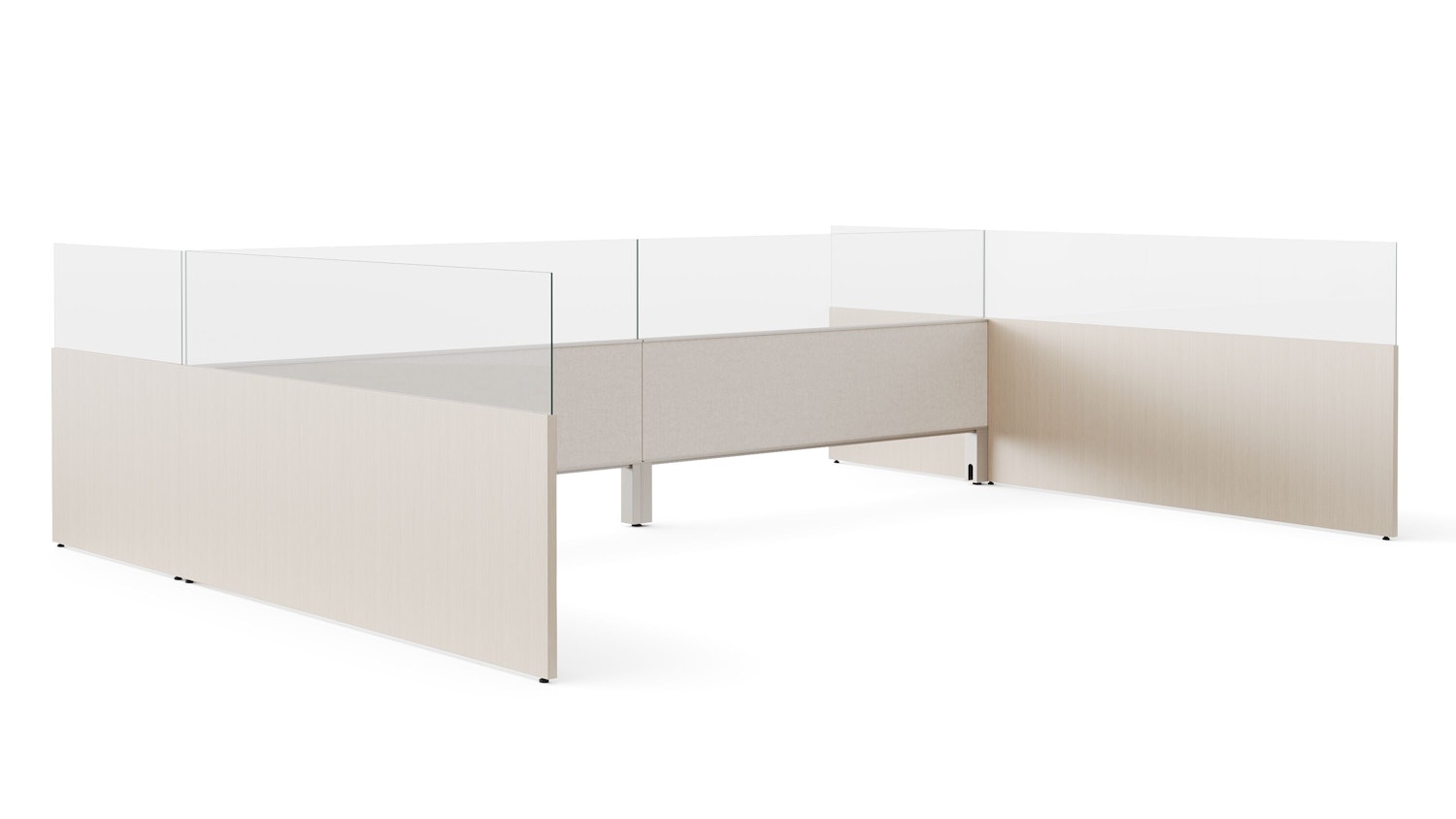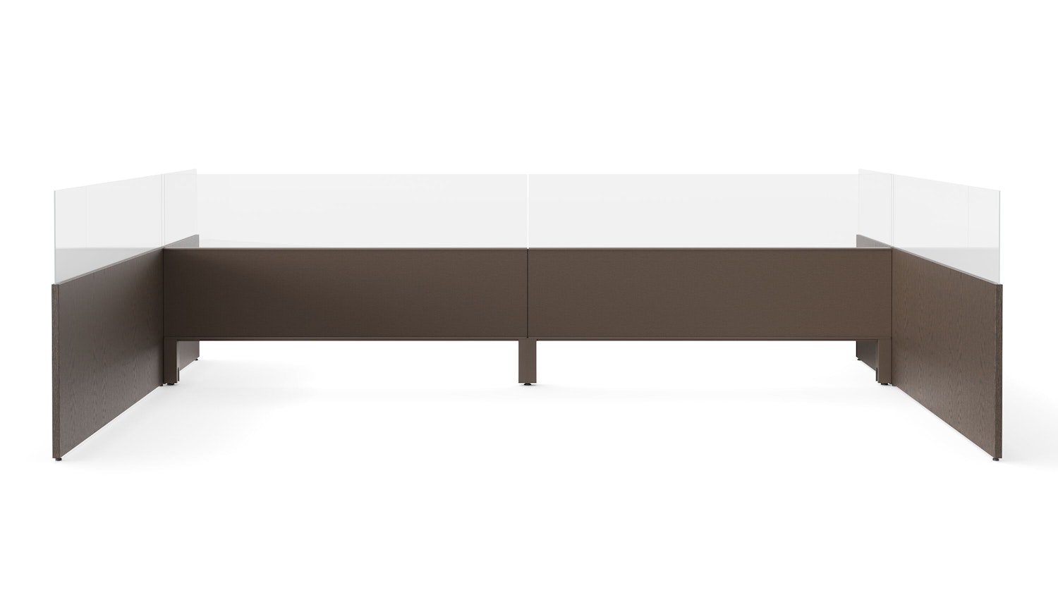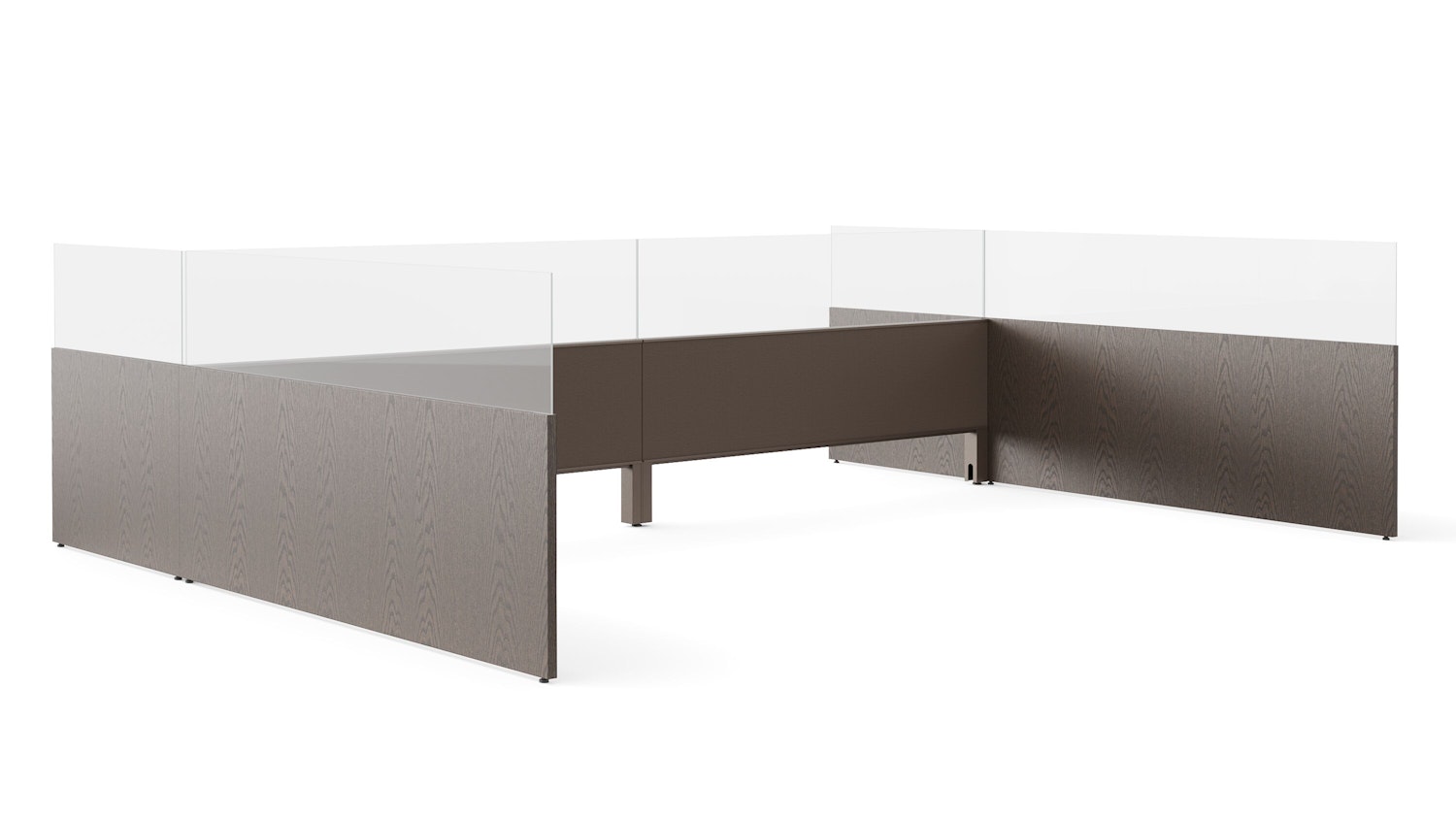 The Elevated Spine sits off the floor and is suitable for straight planning or 90 degree planning with gallery panels. This panel-based technology spine provides flexible power and data capability and can be linked to connect multiple workstations. The elevated design has a light aesthetic, and because the bottom of the spine is open, power can enter anywhere along the lower rail.