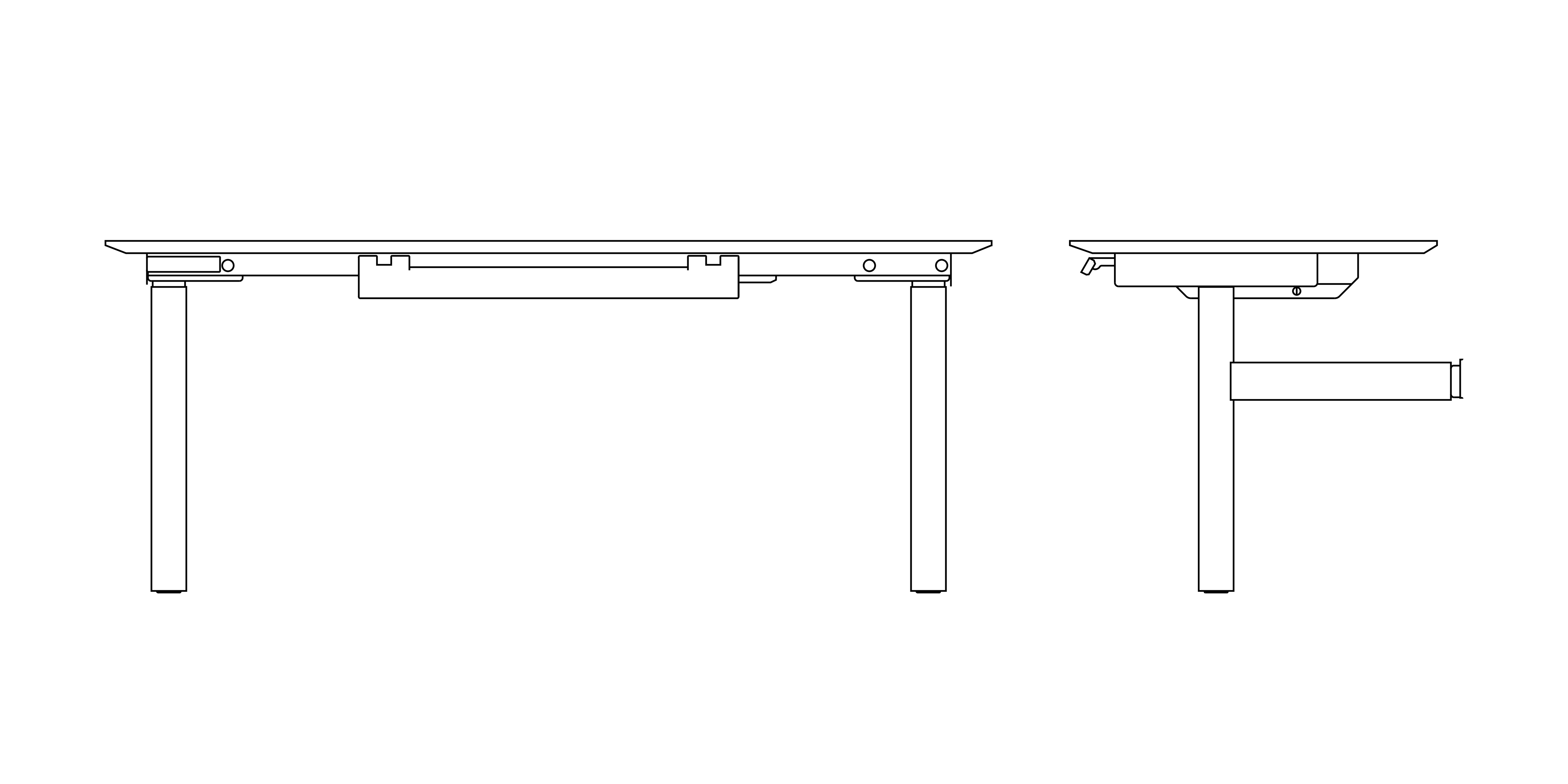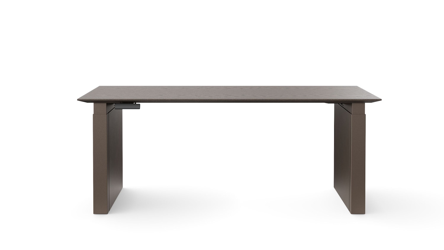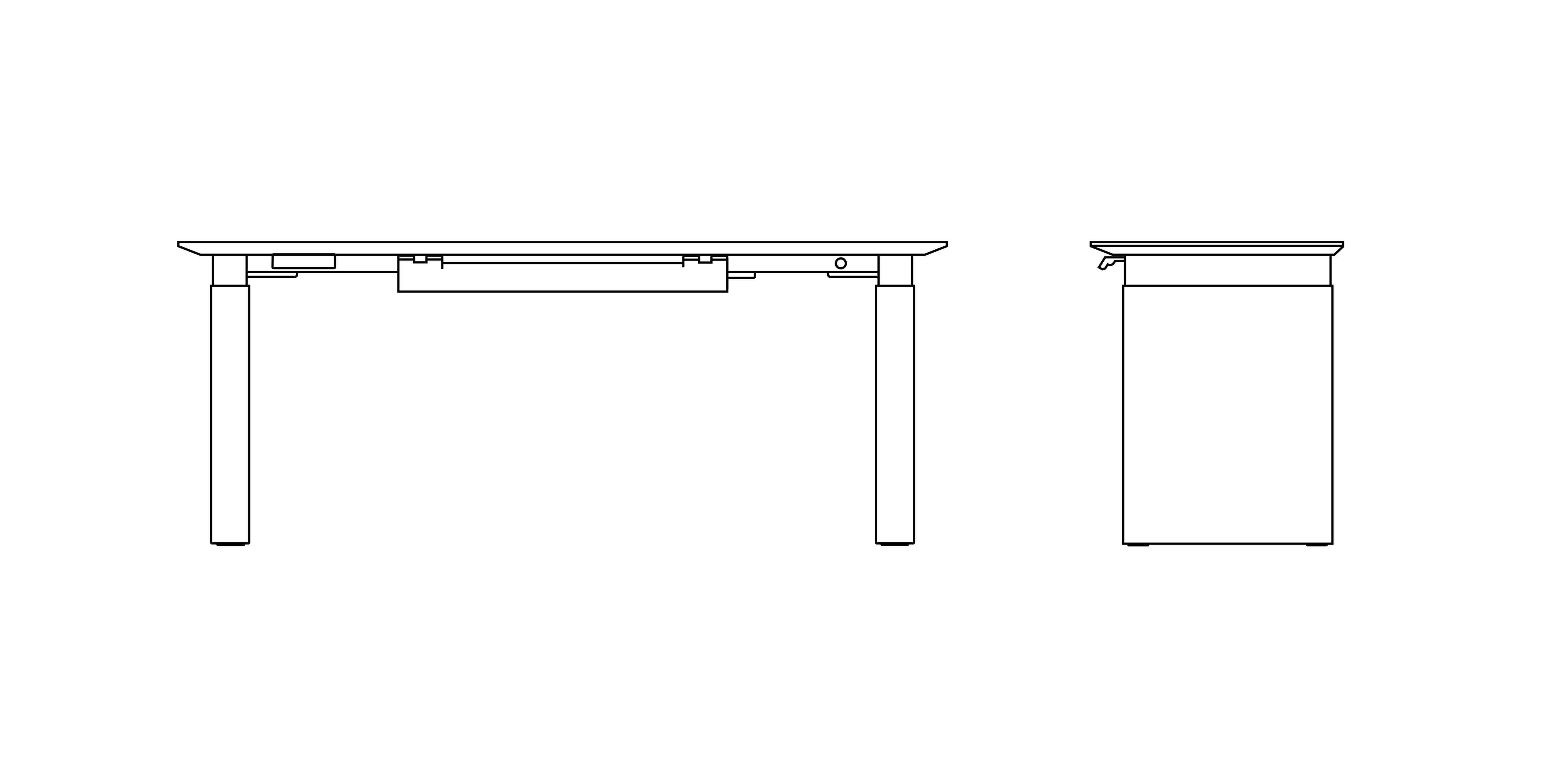 The shrouded leg becomes part of the architecture and disguises the fact that this is a height-adjustable table.