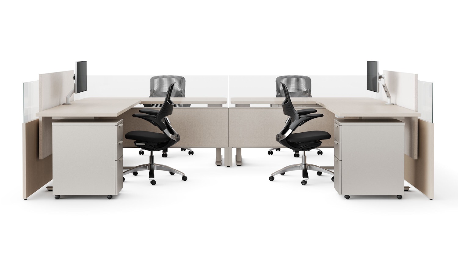 • Floorstanding pedestals can replace wall-hung support brackets, end panels, legs, T-bases, and L-bases to support worksurfaces