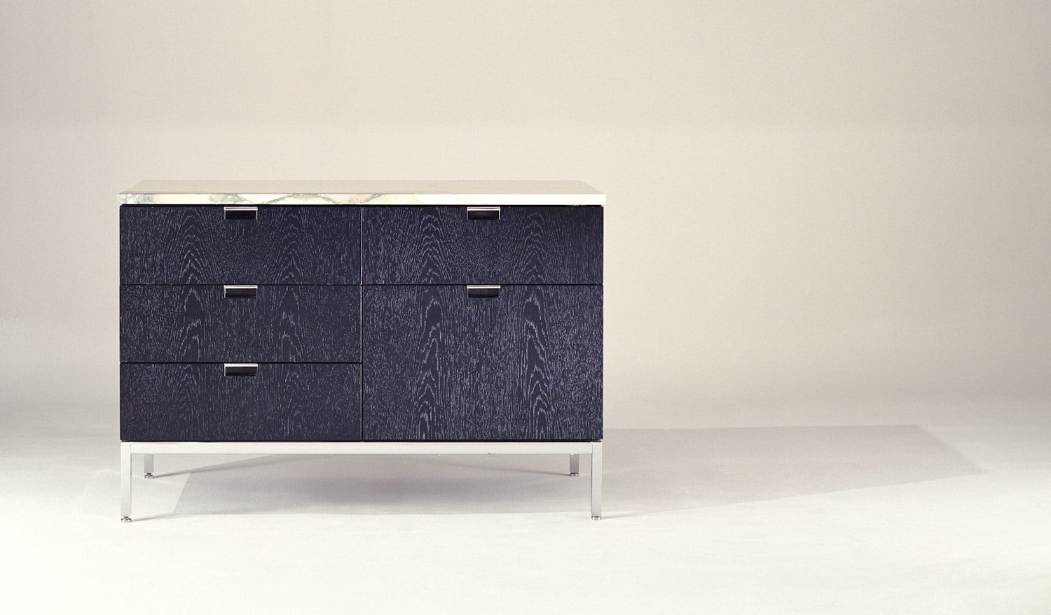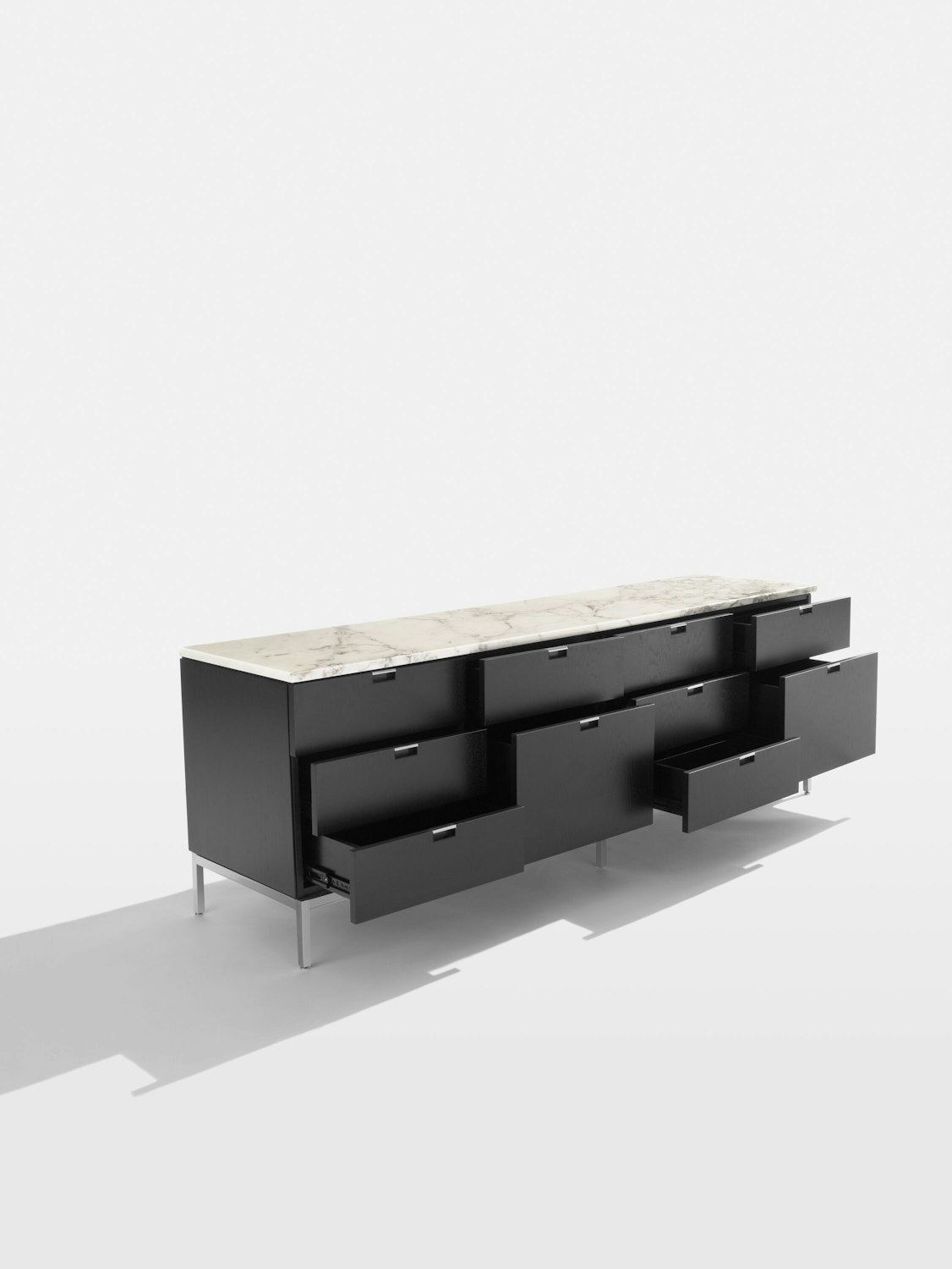 When Florence Knoll revolutionized private office design by replacing the typical executive desk with a table desk, she needed a place for all the filing and storage that had traditionally lived in desk drawers. Her solution, executed in typical Florence Knoll elegance, was the low credenza. “I did it because I needed the piece of furniture for a job and it wasn’t there, so I designed it.” Perfectly proportioned and immaculately detailed, the design embodies Florence Knoll’s adherence to the teachings of her favorite mentor, Mies van der Rohe.