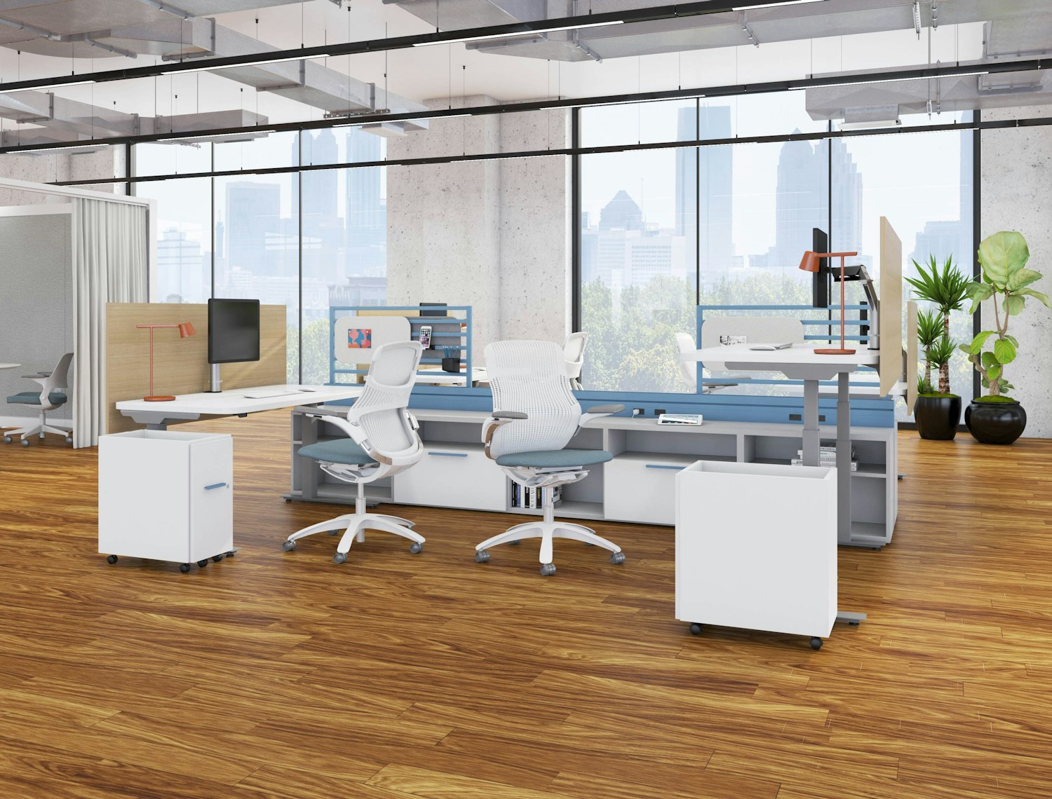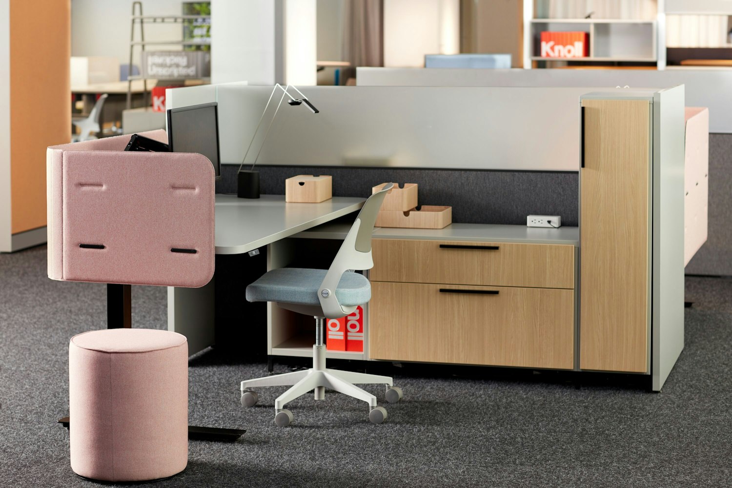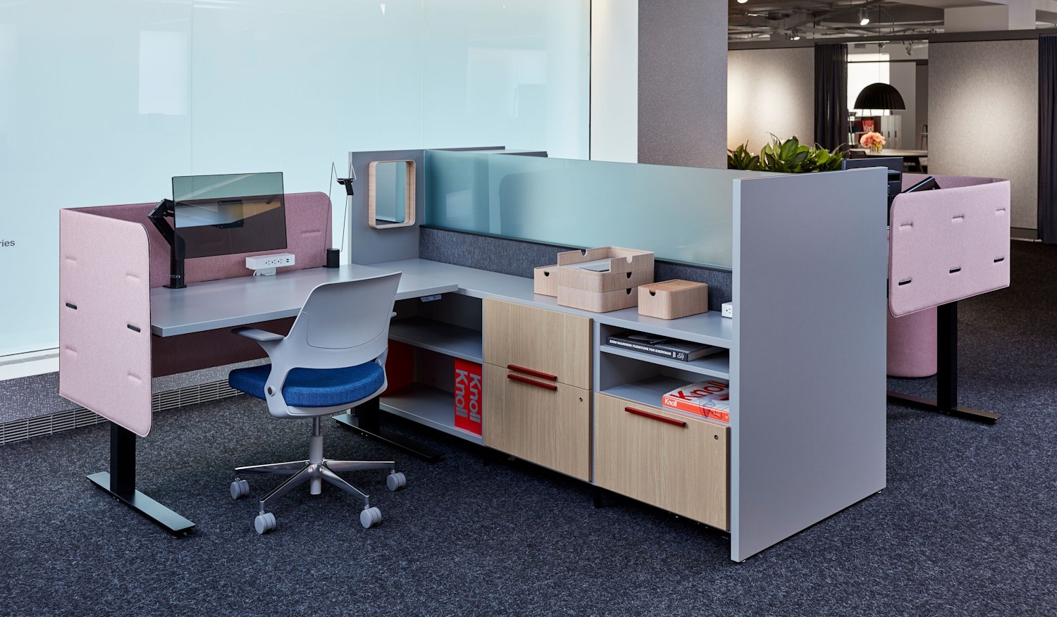 k. stand responds to the needs of today’s office by creating adaptable spaces that support work among groups in all areas of the workplace. k. stand easily accommodates desktop screens along with ergonomic KnollExtra accessories, including monitor arms and task lights.
