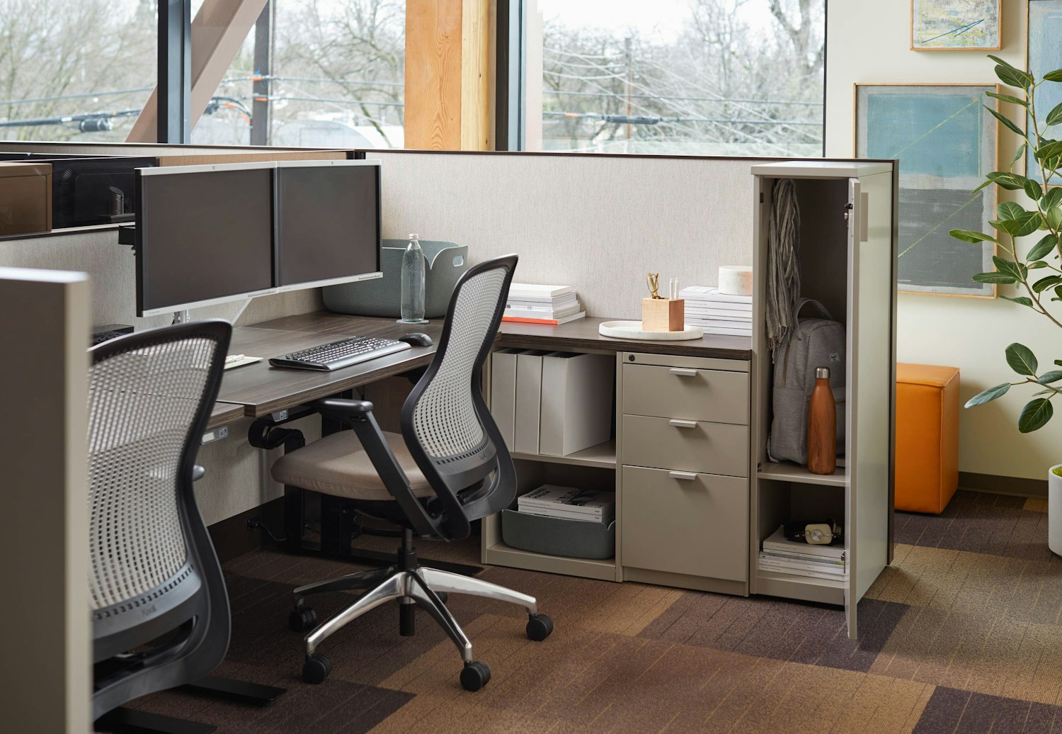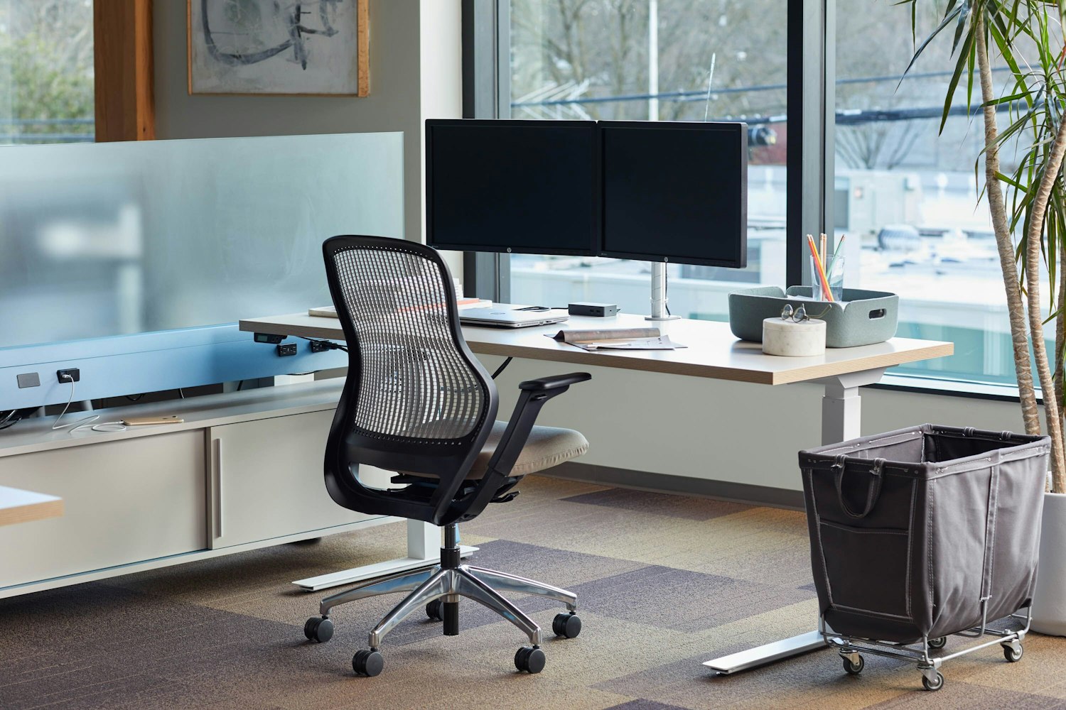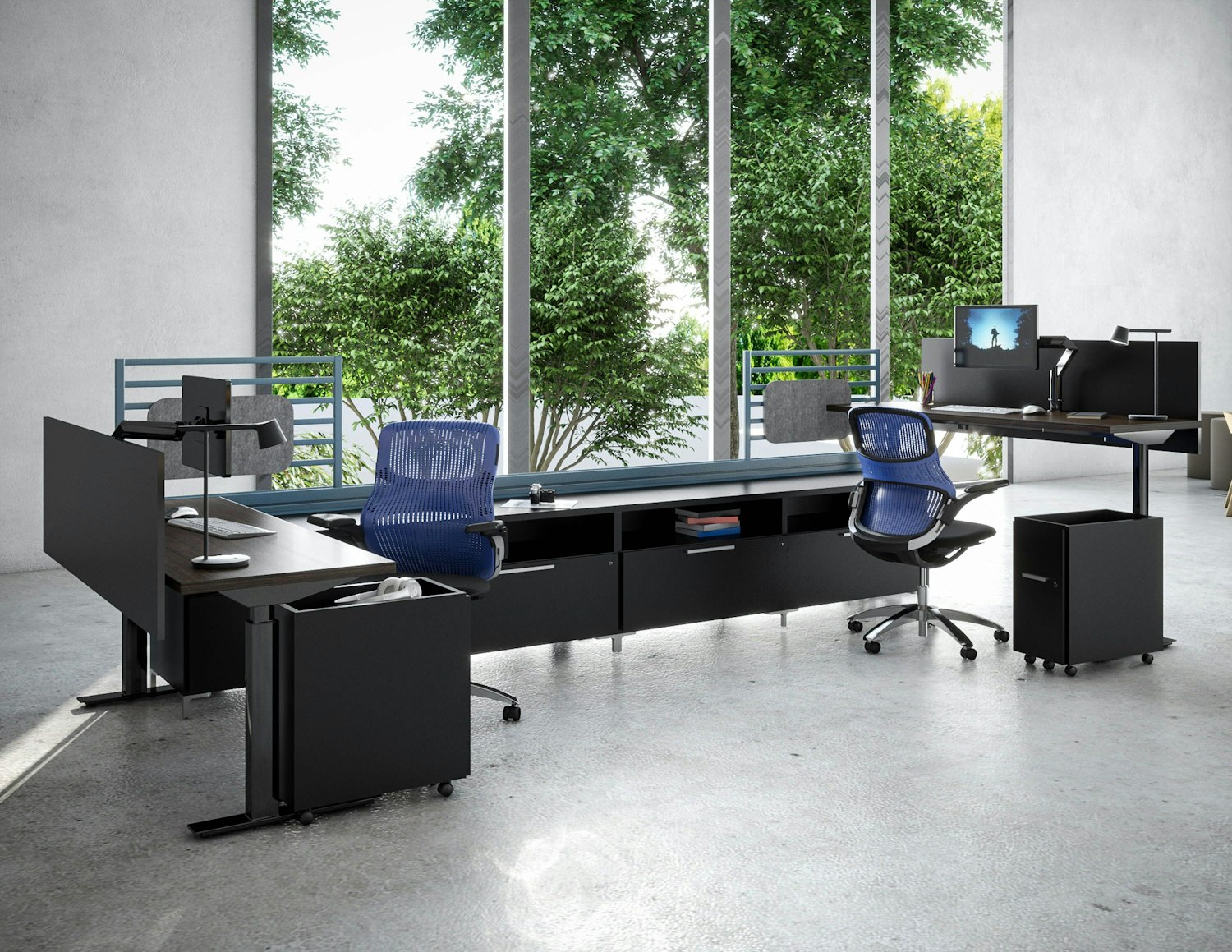 k. stand responds to the needs of today’s office by creating adaptable spaces that support work among groups in all areas of the workplace. k. stand easily accommodates desktop screens along with ergonomic KnollExtra accessories, including monitor arms and task lights.