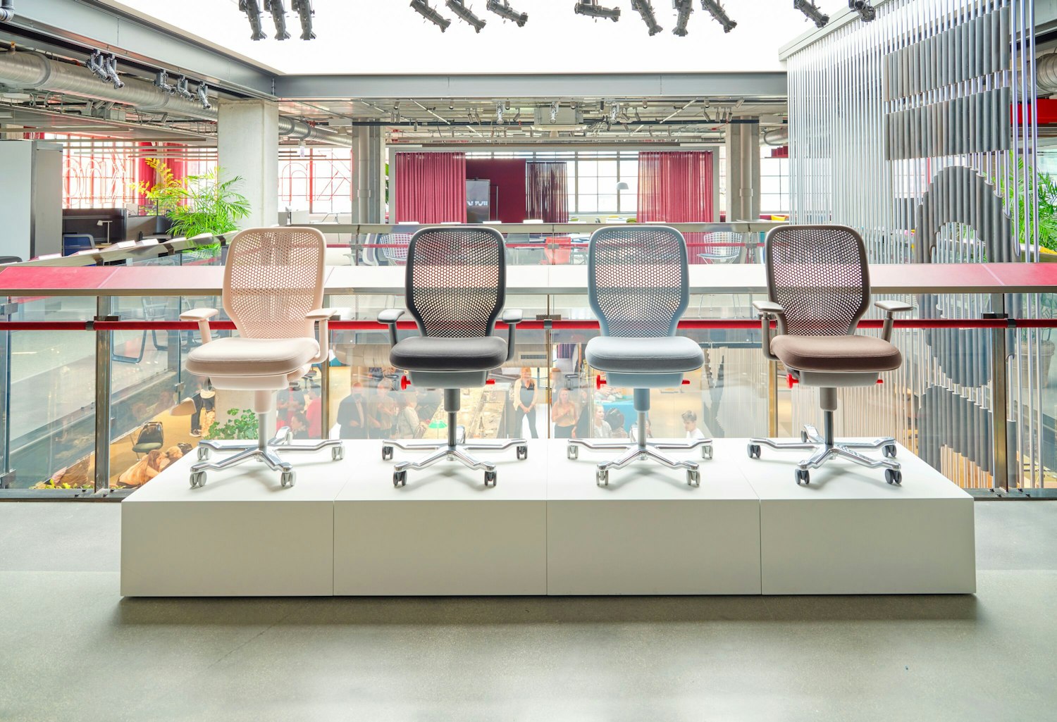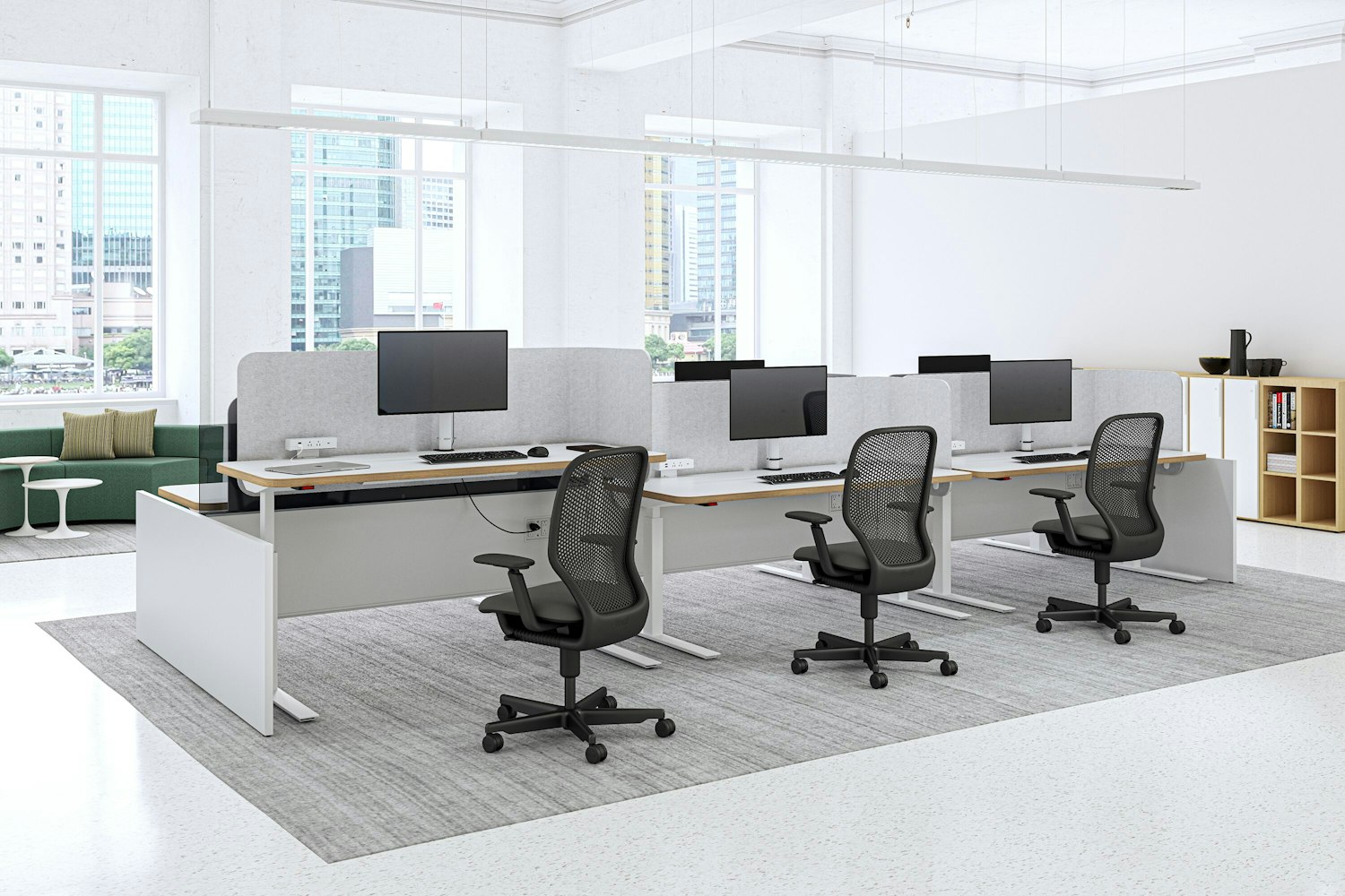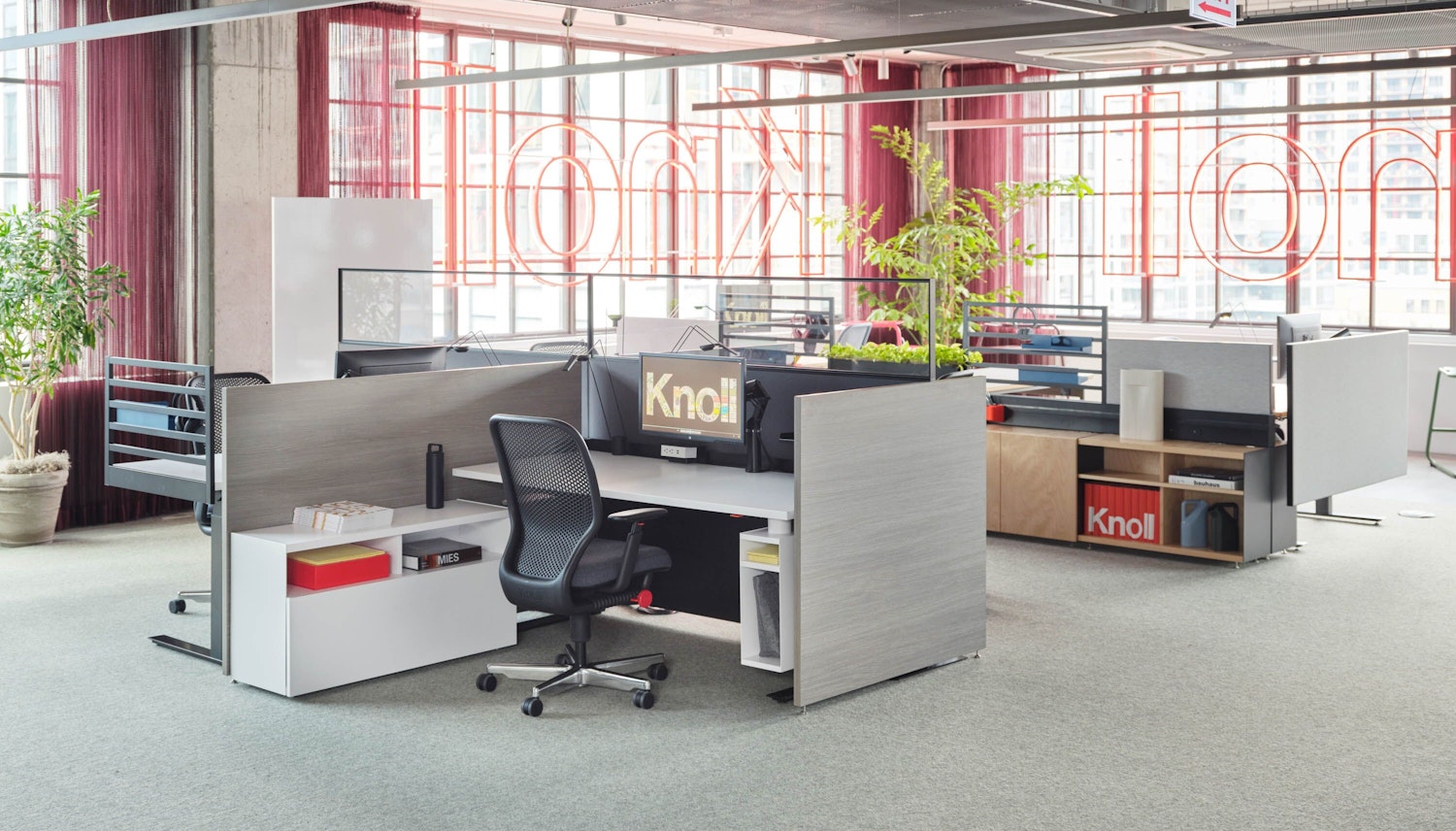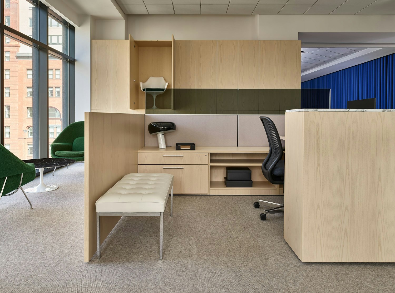 19255 | MillerKnoll San Francisco Showroom with Cove Collection by Knoll Private Workstation, Newson Chair, and Florence Knoll Bench