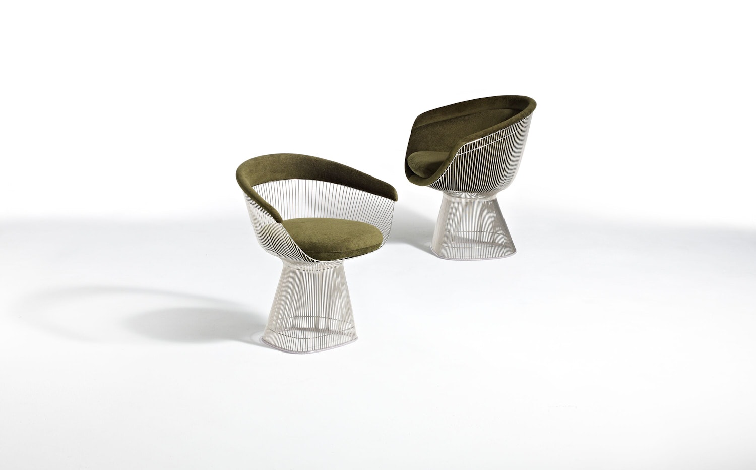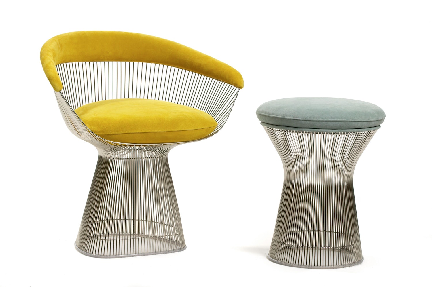 Originally introduced by Knoll in 1966, the Platner Collection is an icon of modern furniture. Platner personally formulated the production techniques for the complicated designs with each chair requiring over a thousand welds and more than one hundred cylindrical steel rods.