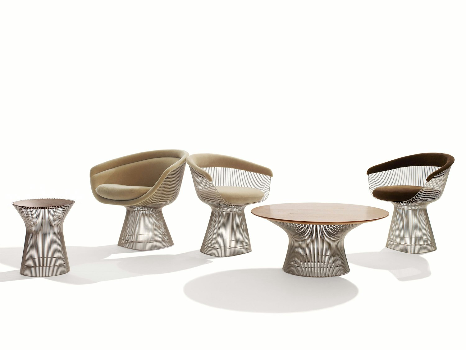Originally introduced by Knoll in 1966, the Platner Collection is an icon of modern furniture. Platner personally formulated the production techniques for the complicated designs with each chair requiring over a thousand welds and more than one hundred cylindrical steel rods.