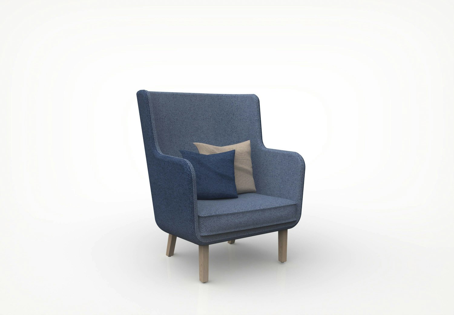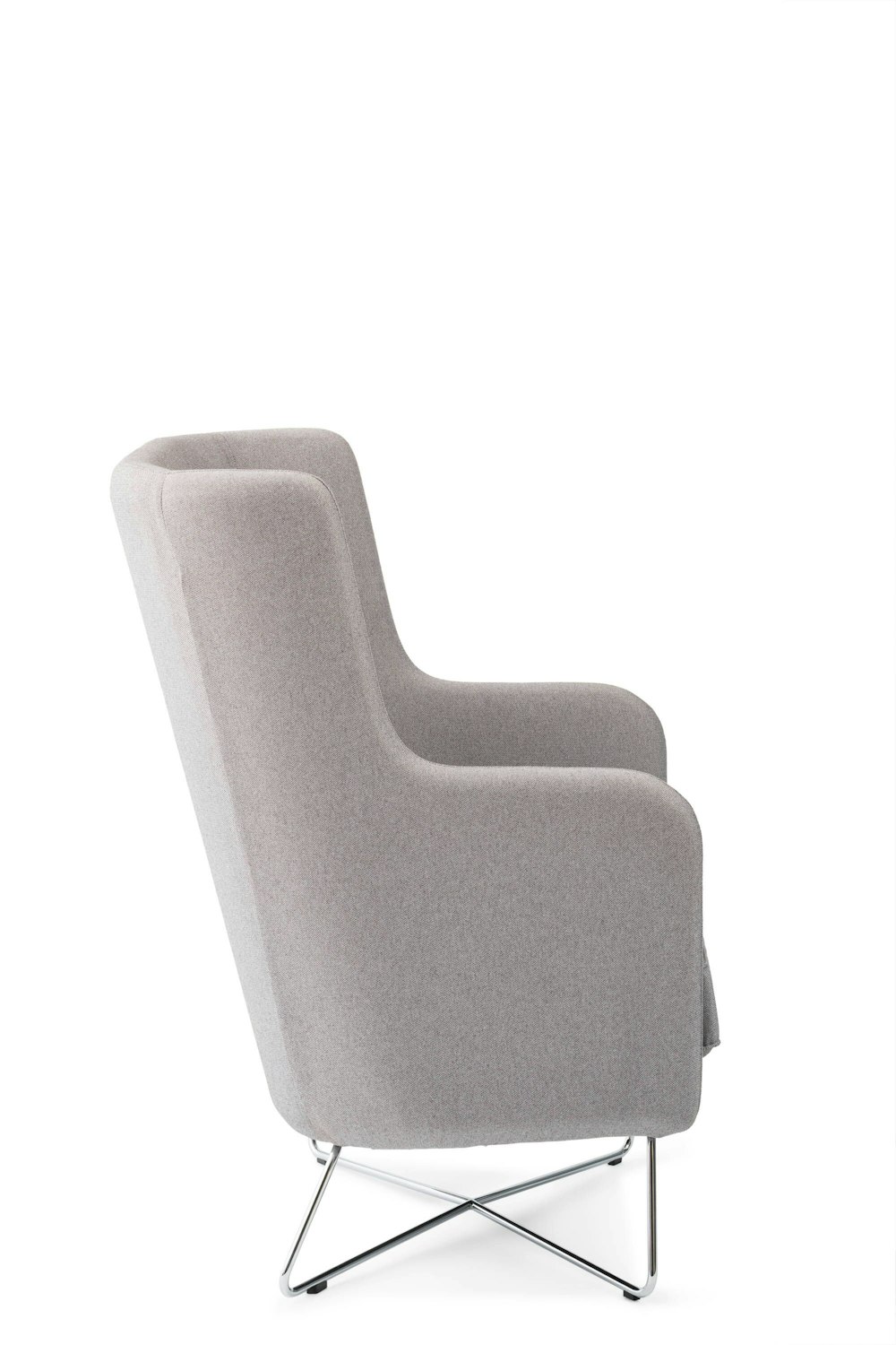 Rockwell Unscripted lounge seating is upholstery as invitation. The Unscripted High Back Chair lends a comforting sense of enclosure. The curved touchpoints, stitching details, and generous seat inspire hospitality at every turn. The solid wood legs are warm and modern; the wire base is casual and industrial.