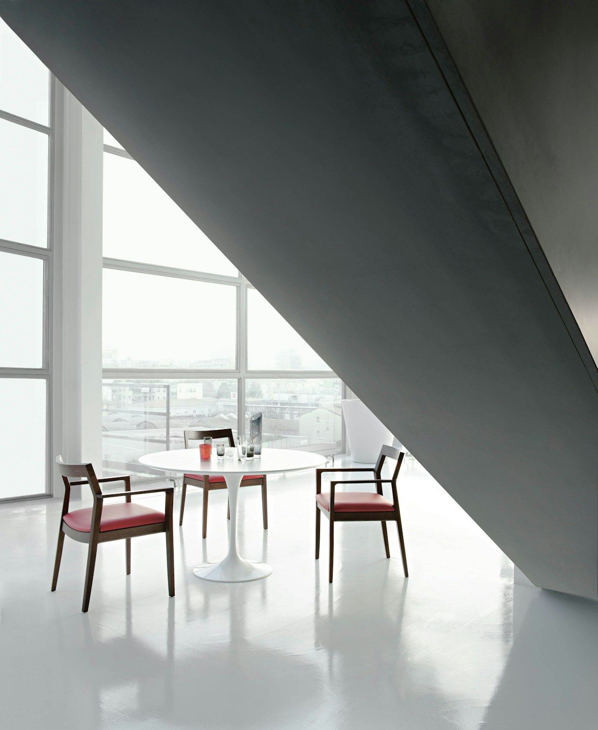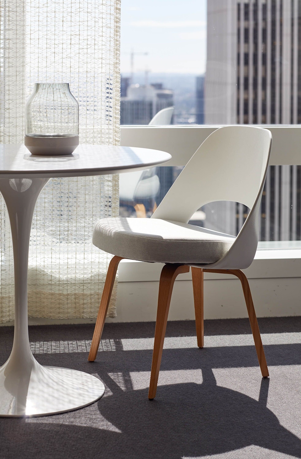 The Saarinen Pedestal Table brings order and beauty to the surrounding architecture.