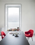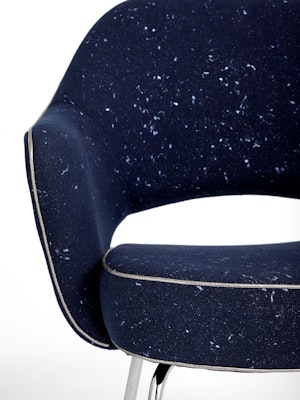 After completing the Womb Chair, Saarinen returned his focus to task seating, scaling down the concept and form of the womb into arm and armless chairs. Introduced as the 71 and 72 Series, the chairs replaced Florence Knoll’s model 43 chairs as the Planning Unit’s go-to seating solution. The iconic chair, often referred to as “that chair with the hole in the back,” has been a staple of the Knoll portfolio for more than 60 years.
