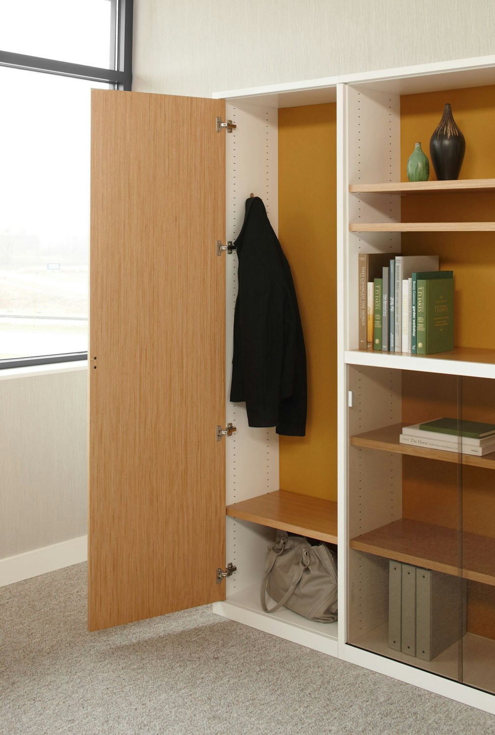 • COMPREHENSIVE MATERIAL AND AESTHETIC OPTIONS. Template offers a wide range of finish options, multiple storage fronts and backs, various door styles and fully customizable shelving schemes.