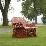 Topiary is the only 100% sheet metal seating collection on the market, using a technique that involves bending, stamping and folding sheets of aluminum. The powder coated components make the chair resilient enough to stay outdoors all year round.