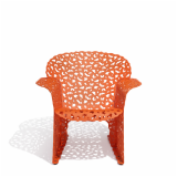 Topiary is the only 100% sheet metal seating collection on the market, using a technique that involves bending, stamping and folding sheets of aluminum. The powder coated components make the chair resilient enough to stay outdoors all year round.