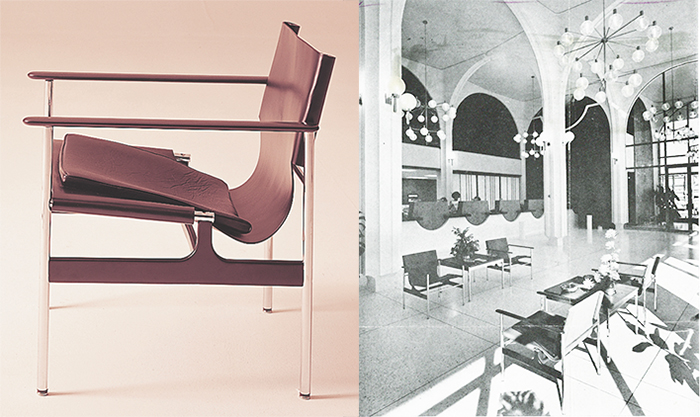 5. Pollock Arm Chairs photographed in the main banking lobby of the Sumitomo Bank of California, Oakland (Shig Iyama, A.I.A.). The photo is by Roger Sturtevant and appeared in a feature by Burt Orben in Interior Design, March 1966.