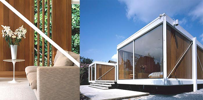Left: A Saarinen Side Table in the living area of Space House. Right: The steel frame, glass and timber construction of Foggo & Thomas' design. Images courtesy of The Modern House.