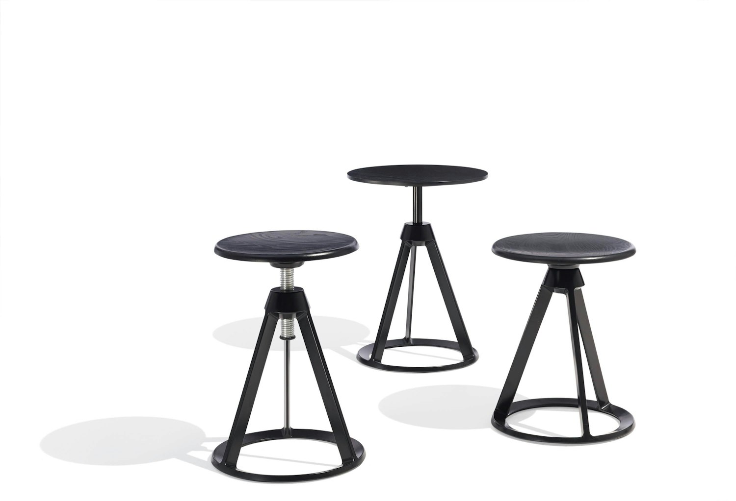 Taking cues from the aesthetic principles of Modernism and pragmatic considerations of the height-adjustable stools manufactured for sewing professionals in the mid-century era, the Piton™ Stool and Table are equally well suited for industrial tasks and domestic settings.
