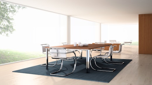The LSM Conference Table Series offers a refined aesthetic through unique engineering that minimizes the base in proportion to the top. The table is distilled to its elemental horizontal worksurface, maximizing knee clearance while creating a sophisticated presence. A multitude of electrical options also make communication and data management simple, while maintaining a clean look and feel.