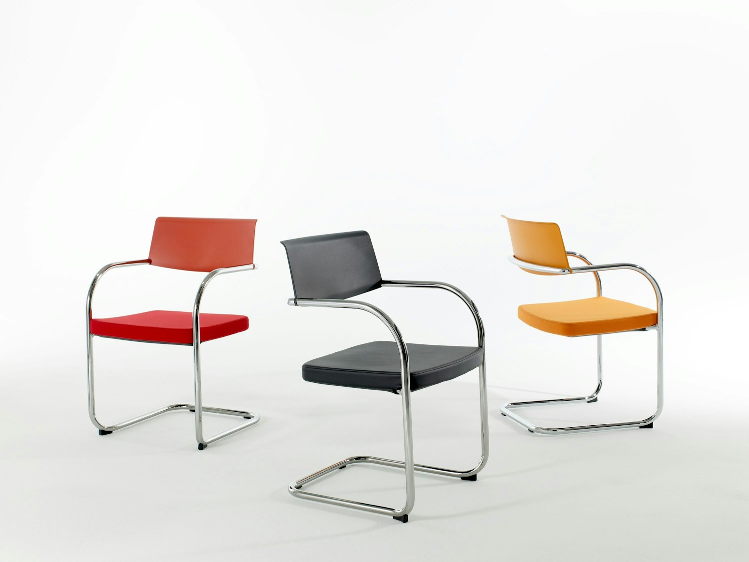 Taking its cue from the cantilevered form of the classic Tubular Brno chair by Ludwig Mies van der Rohe, Moment is a practical solution for the guest chair that most offices require. Moment complements our diverse portfolio of office seating and furniture with its pure expression of the cantilevered form.