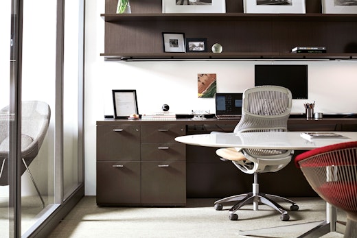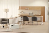 Brian Graham: “We’ve really rechristened the classic look for the modern workplace. We’ve created a series of freestanding cabinetry and credenzas that are lifted off the ground, so they communicate lightness in scale and a fluidity that are very modern. The same exact storage componentry comes into the open office, which really fulfills the original Reff promise of total, seamless integration of the workplace.”