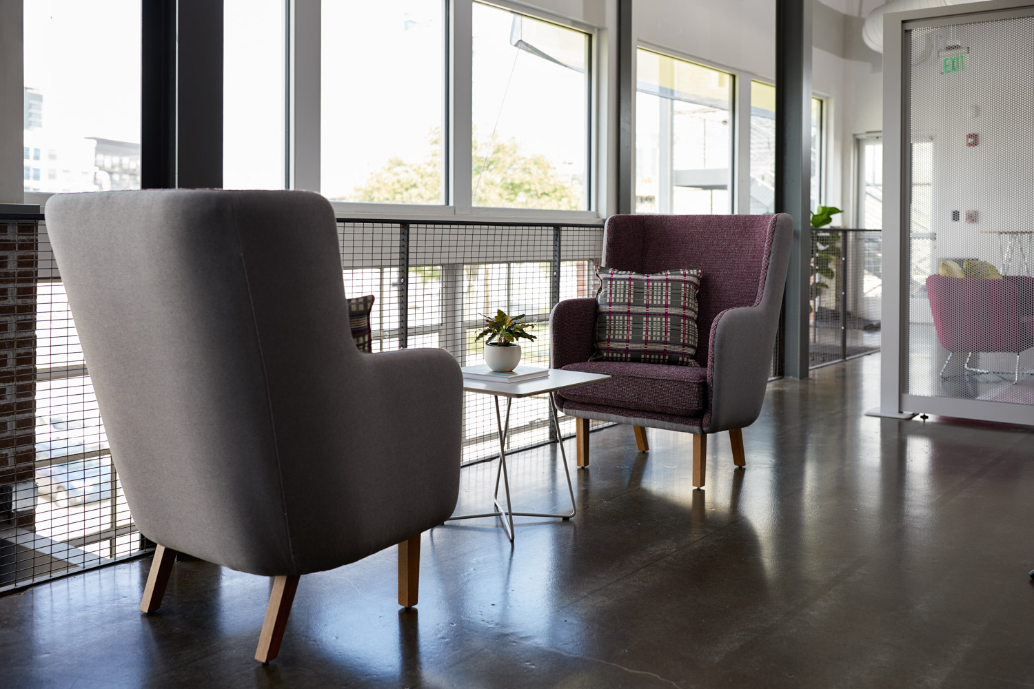 Rockwell Unscripted lounge seating is upholstery as invitation. The Unscripted High Back Chair lends a comforting sense of enclosure. The curved touchpoints, stitching details, and generous seat inspire hospitality at every turn. The solid wood legs are warm and modern; the wire base is casual and industrial.