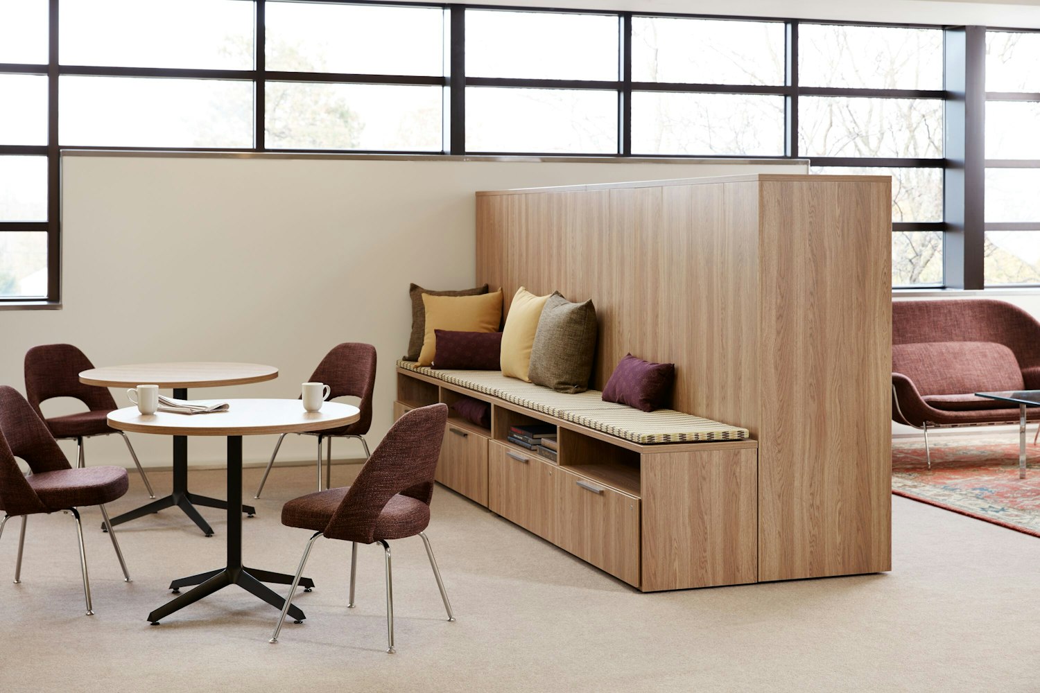 19489 | Skyline Lounge with Saarinen Table and Executive Chairs, Dividends Skyline Cubbies