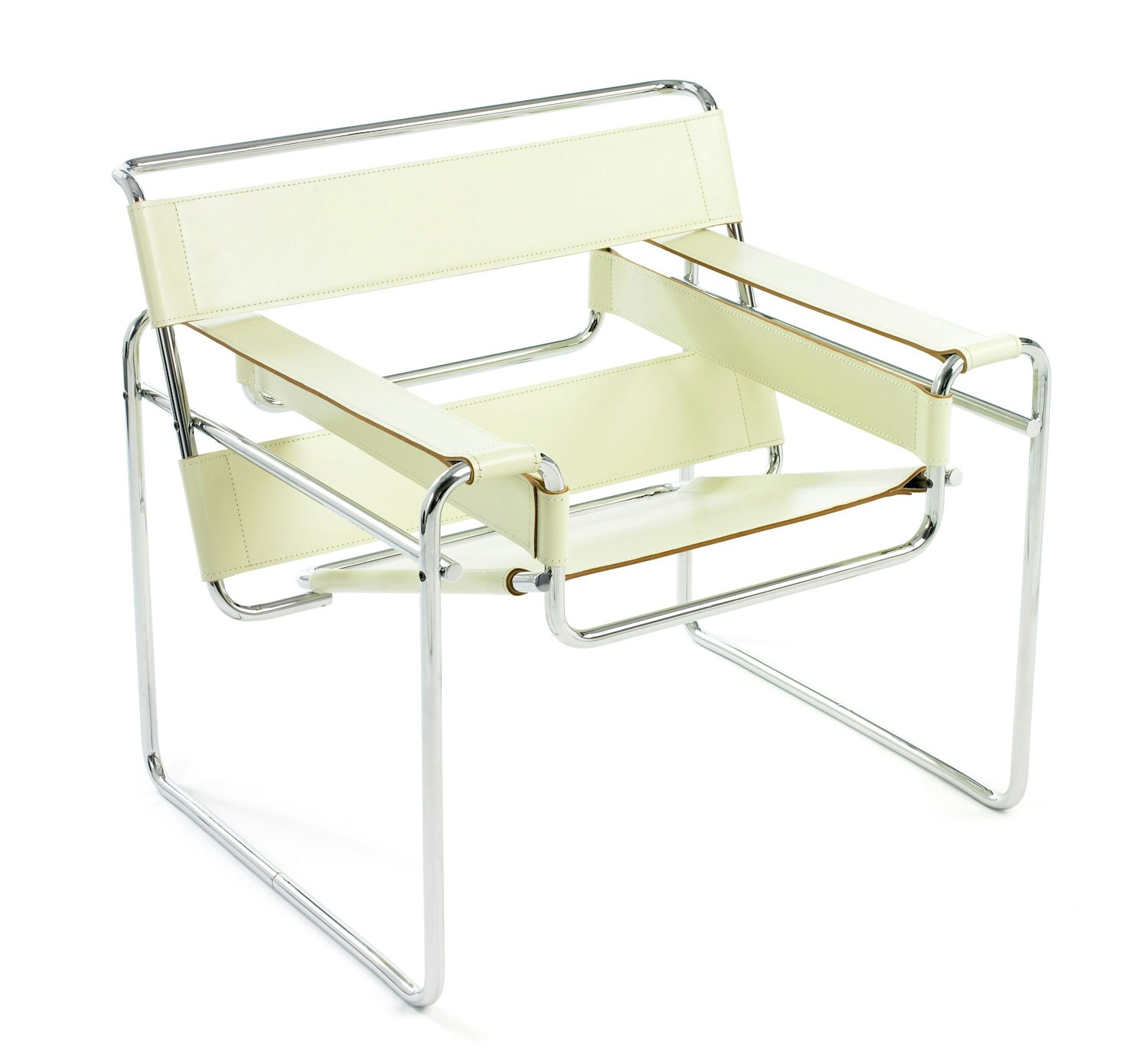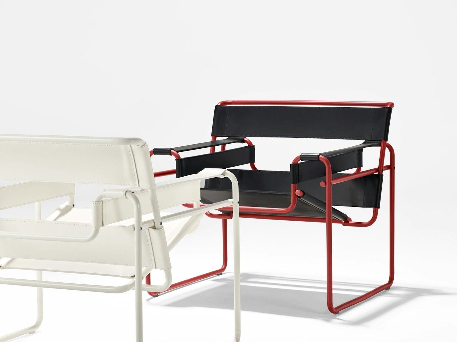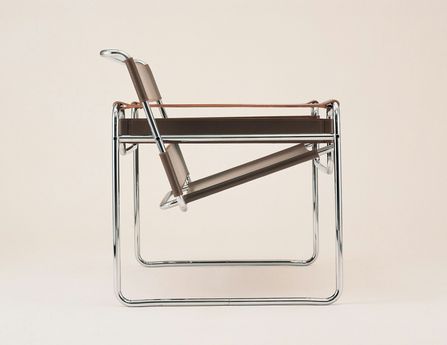 Marcel Breuer was an apprentice at the Bauhaus when he conceived the world’s first tubular steel chair. Inspired by the frame of a bicycle, a product he greatly admired for its functional design, Breuer saw tubular steel as a way of building a more transparent chair. Influenced by the constructivist theories of the Dutch De Stjil movement, Breuer took a familiar form — in this case the classic club chair — and reduced it to its elemental lines and planes. The composition of leather strips suspended on steel tubes was the first chair of its kind. Breuer later named the chair after Wassily Kandinsky, the first person to whom he showed the chair.