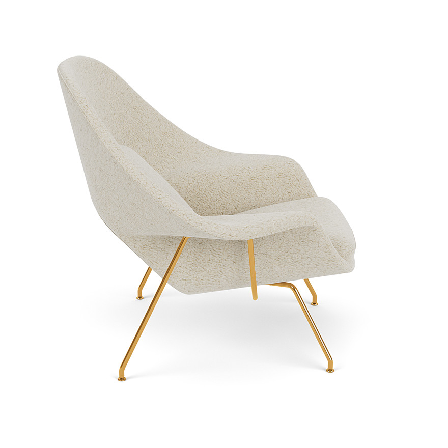 Like many of Saarinen’s furniture designs, the Womb Chair required production techniques and materials still in the infancy of their existence. Saarinen and Florence Knoll found a boat builder in New Jersey who was experimenting with fiberglass and resin to help develop manufacturing methods for the new chair. Florence Knoll: “He was very skeptical. We just begged him. I guess we were so young and so enthusiastic he finally gave in and worked with us. We had lots of problems and failures until they finally got a chair that would work.”
