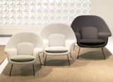 Like many of Saarinen’s furniture designs, the Womb Chair required production techniques and materials still in the infancy of their existence. Saarinen and Florence Knoll found a boat builder in New Jersey who was experimenting with fiberglass and resin to help develop manufacturing methods for the new chair. Florence Knoll: “He was very skeptical. We just begged him. I guess we were so young and so enthusiastic he finally gave in and worked with us. We had lots of problems and failures until they finally got a chair that would work.”
